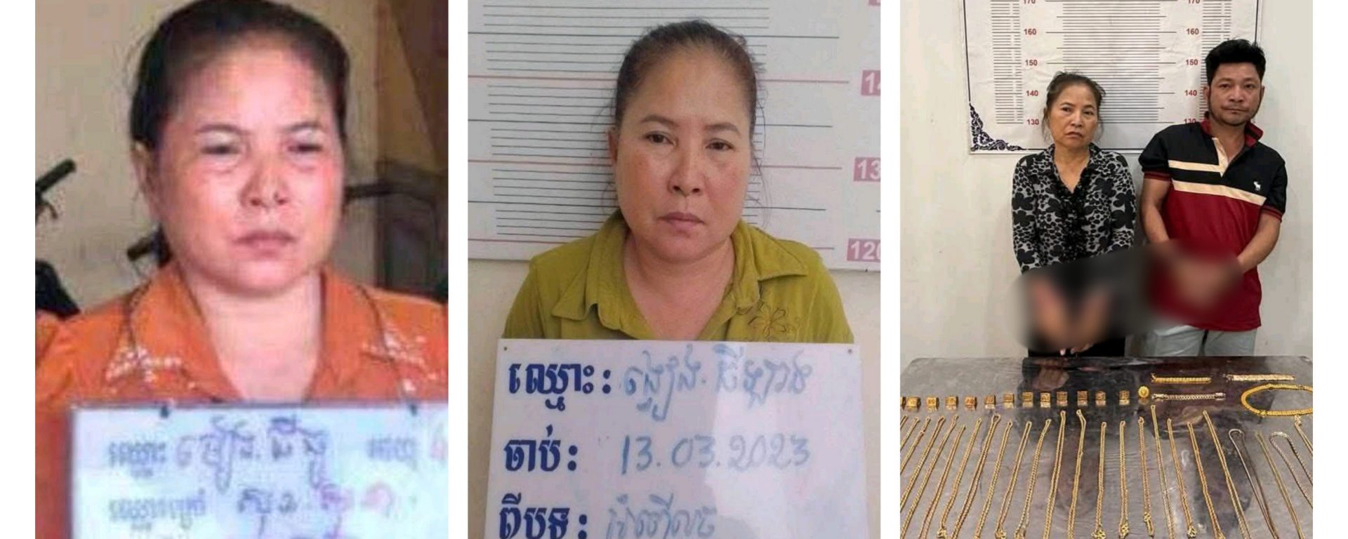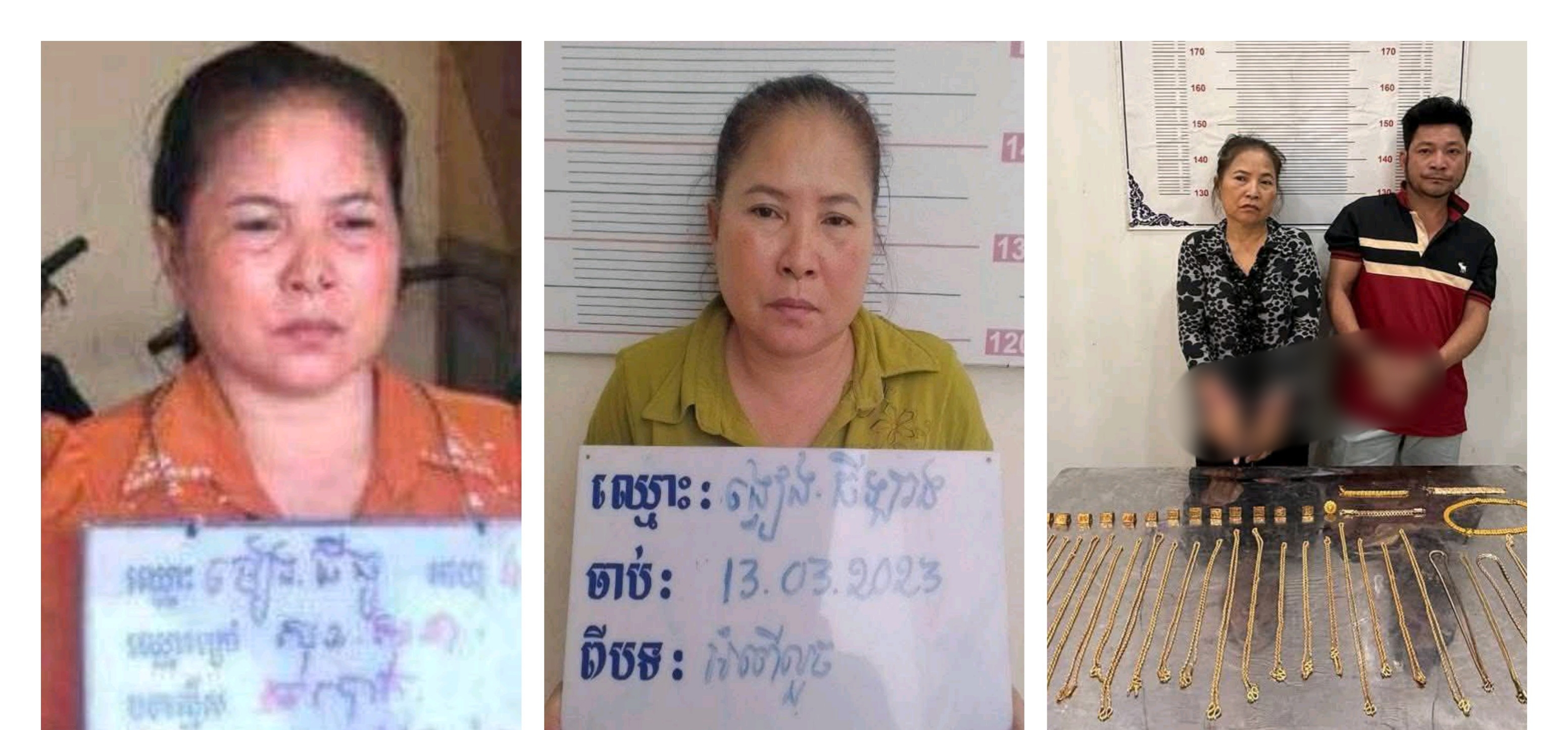 ករណីទី ២ ៖ កាលពីថ្ងៃទី ៦ ខែធ្នូ ឆ្នាំ២០២៥ វេលាម៉ោង ១៧:០០ នាទី ជនសង្ស័យ បានធ្វើ សកម្មភាពលួចប្ដូរ មាសក្លែងក្លាយបន្លំយកមាសពិតប្រាកដ នៅចំណុចហាងលក់មាសយីហោ ហេង មានលាភ ផ្ទះលេខ១៩អឺ០ ផ្លូវ១៣ ភូមិ៥ សង្កាត់ផ្សារចាស់ ខណ្ឌដូនពេញ រាជធានីភ្នំពេញ យកបានខ្សែក ទម្ងន់ ២តម្លឹង ។