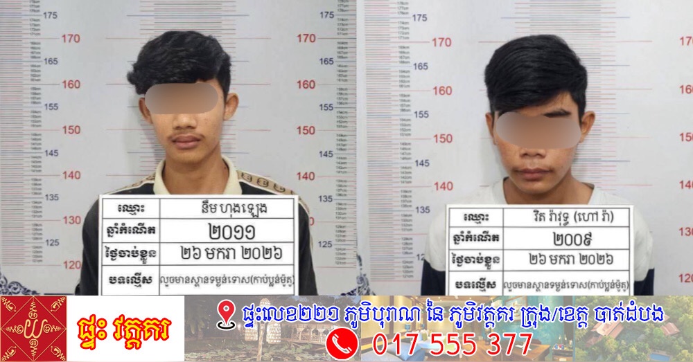 ខេត្តកណ្ដាល÷ក្រុមយុវជនសិស្សសាលាដែលតែងតែធ្វើសកម្មភាពបង្ហោះម៉ូតូ និងធាក់ប្លន់អ្នកធ្វើដំណើរយ៉ាងសកម្មនៅលើផ្លូវក្រវាត់ក្រុងទី៣ ត្រូវបានកម្លាំងសមត្ថកិច្ចជំនាញបើកប្រតិបត្តិការស្រាវជ្រាវរហូតឈានដល់ការឃាត់ខ្លួនបានសម្រេច។ ប្រតិបត្តិការនេះបានធ្វើឡើងកាលពីថ្ងៃទី២៦ មករា ២០២៦ នៅចំណុចលើផ្លូវ ២១ ភូមិលេខ ១ក សង្កាត់ស្វាយរលំ ក្រុងតាខ្មៅ ខេត្តកណ្តាល។