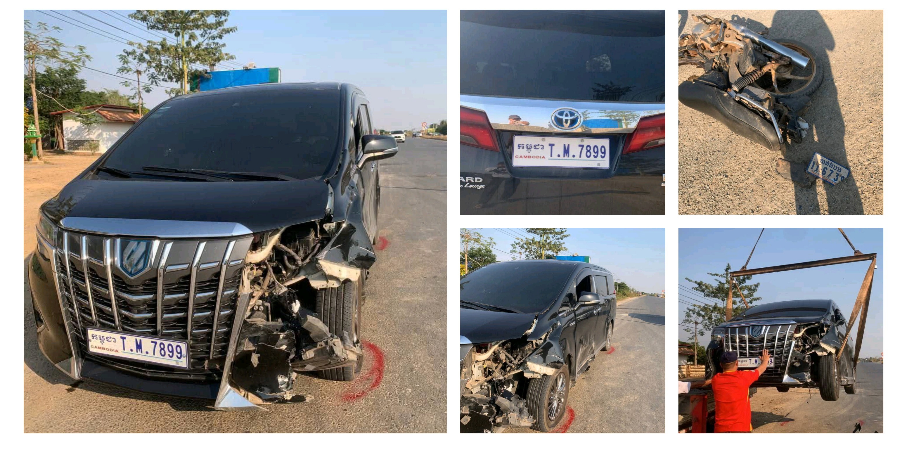 ប្រភពនៅកន្លែងកើតហេតុឱ្យដឹងថា ករណីគ្រោះថ្នាក់ចរាចរណ៍ខាងលើនេះបានកើតឡើងរវាងម៉ូតូម៉ាក ហុងដាឌ្រីម សេរីចាស់មួយគ្រឿង ពាក់ផ្លាកលេខ បាត់ដំបង 1I-6739 បើកបរដោយបុរសម្នាក់ទិសដៅពីត្បូងទៅជើង លុះមកដល់ចំណុចកើតហេតុខាងលើបានបត់ឆ្វេងឆ្លងផ្លូវ ចំណែករថយន្តម៉ាក ALPHARD ពណ៌ខ្មៅ ពាក់ផ្លាកលេខ កម្ពុជា.T.M-7899 បើកបរដោយបុរសម្នាក់ ទិសដៅស្របគ្នាក្នុងល្បឿនយ៉ាងលឿន ក៏ជ្រុលមកបុកពីក្រោយពេញទំហឹង បណ្តាលអោយទាំងម៉ូតូនិងមនុស្សប៉ើងរងរបួសធ្ងន់តែម្តង។