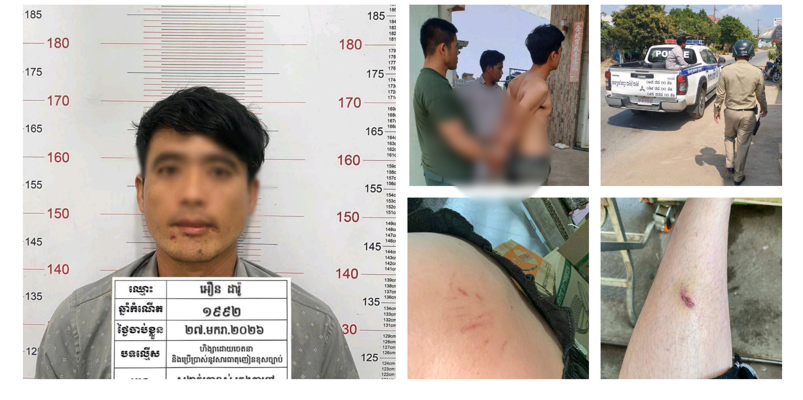 ខេត្តកណ្តាល ÷ ដោយសារឥទ្ធិពលនៃការប្រើប្រាស់គ្រឿងញៀន ហើយគ្មានលុយទិញ ជនសង្ស័យបានសុំលុយពីក្មួយ តែសុំមិនបាន ក៏ប្រើហិង្សាដោយចេតនាដេញវាយក្មួយរហូតមកដល់ម្តាយ(បងស្រីបង្កើត) មកវាយបងស្រី លួចឥវ៉ាន់បងស្រី និងគម្រាមថានឹងសម្លាប់ ត្រូវសមត្ថកិច្ចអន្តរាគមន៍ជួយចាប់ឃាត់ខ្លួនជនសង្ស័យបាន។ ហេតុការណ៍ចុងក្រោយ បានកើតឡើងនៅថ្ងៃទី ២៧ខែមករាឆ្នាំ២០២៦ នៅចំណុចផ្ទះស្ត្តី្រគ្រោះស្ថិតក្នុងភូមិកោះគរ សង្កាត់រកាខ្ពស់ ក្រុងតាខ្មៅ ខេត្តកណ្តាល ។