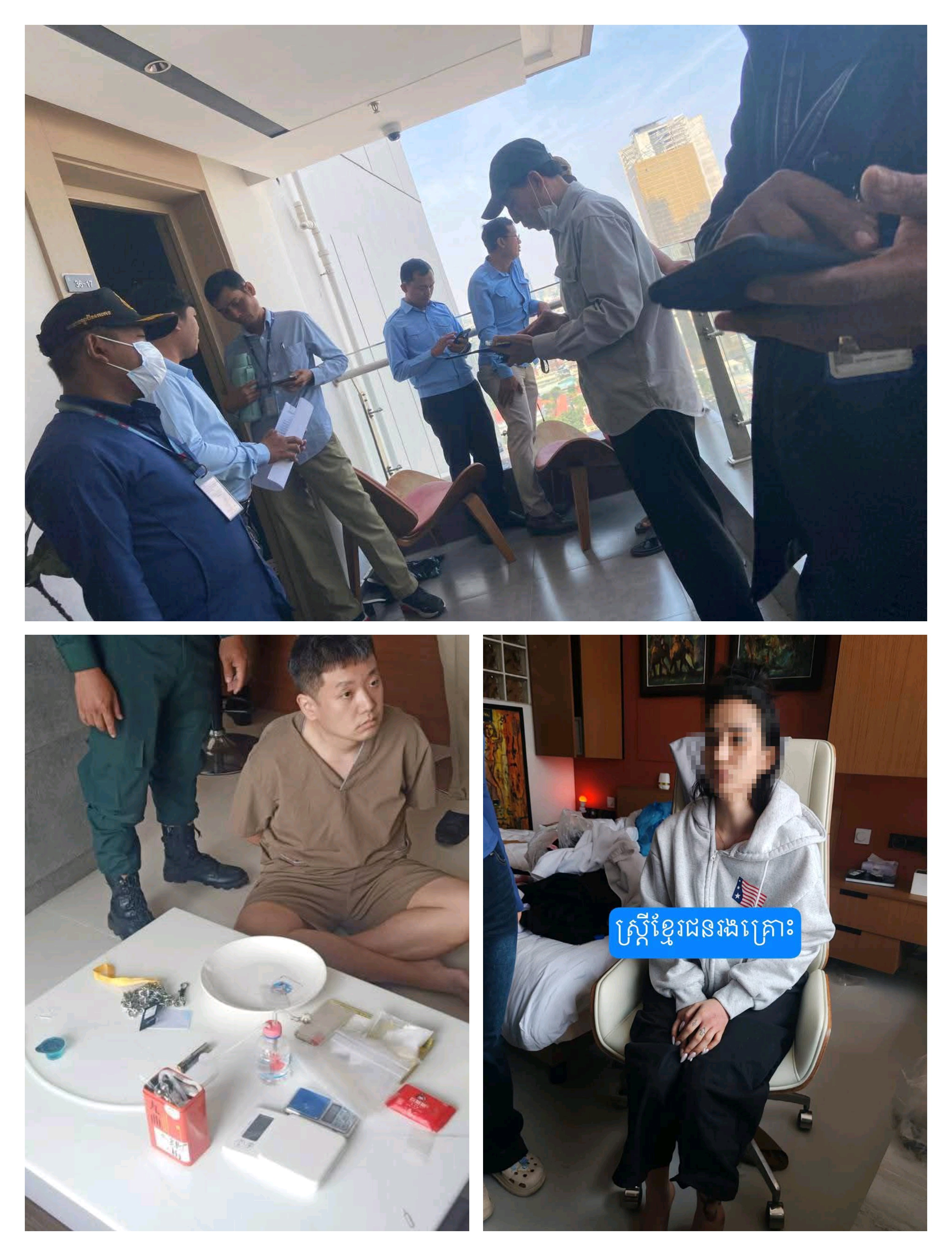 មន្ត្រីនគរបាលបានឲ្យដឹងថា កម្លាំងជំនាញបានចុះឆែក ឆេរអាគារលេខ ៦២៣ AGILE SKY RESIDENCE នៅផ្លូវមុនីវង្ស ភូមិ៧ សង្កាត់បឹងកេងកង៣ ខណ្ឌបឹងកេងកង រាជធានីភ្នំពេញ។ ជាក់ស្ដែងកម្លាំងចម្រុះបានឆែកឆេរបន្ទប់លេខA36-16 និងបន្ទប់លេខ A36- 17 ឃាត់ខ្លួនជនសង្ស័យបាន១នាក់ ពាក់ព័ន្ធក្នុងករណីឃុំឃាំង និងបង្ខាំងមនុស្សដោយខុសច្បាប់ជំរិតទារ ប្រាក់ចំនួន៥,០០០ដុល្លារ។
