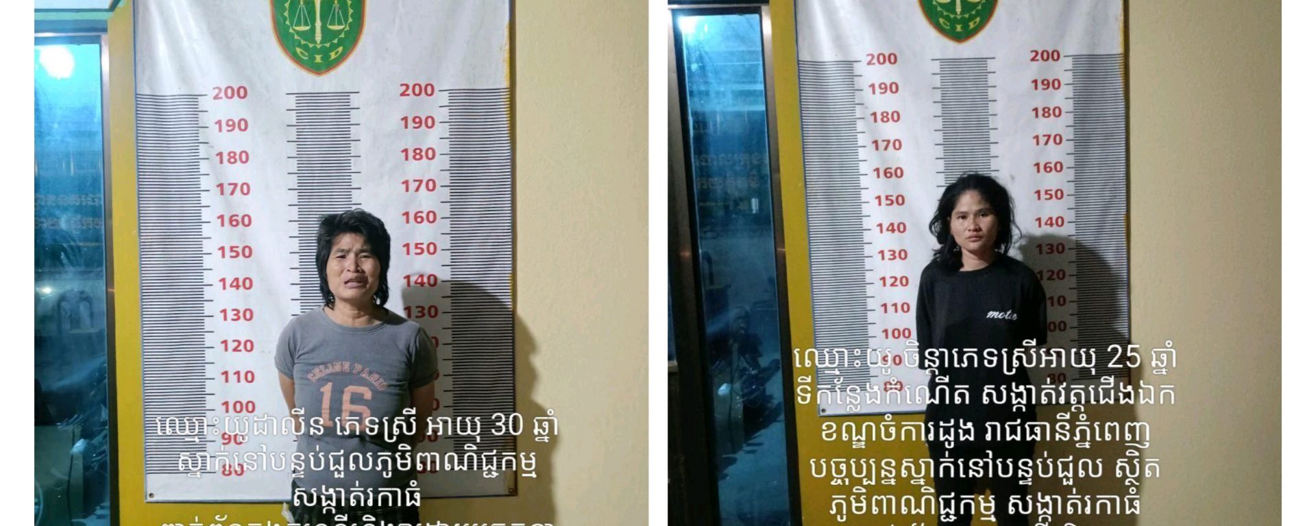 នគរបាលក្រុងច្បារមនបានបន្តថា ក្រោយពីទទួលបានព័ត៌មាន និងពាក្យបណ្តឹងស្ត្រីរងគ្រោះខាងលើ ផ្នែកយុត្តិធម៌សហការជាមួយ កម្លាំងប៉ុស្ដិ៍នគរបាលរដ្ឋបាលសង្កាត់រការធំ បានធ្វើការស្រាវជ្រាវរហូតឈានដល់ការឃាត់ខ្លួន ជនសង្ស័យចំនួន០២នាក់÷ ទី១- ឈ្មោះ យូ ចិន្តា ហៅ ឡែន ភេទស្រី អាយុ២៥ឆ្នាំ មុខរបរមិនពិតប្រាកដ និងទី២-ឈ្មោះ យូ ដាលីន ភេទស្រី អាយុ៣០ឆ្នាំ ទាំងពីរស្នាក់នៅបន្ទប់ជួល ក្នុងភូមិពាណិជ្ជកម្ម សង្កាត់រការធំ ក្រុងច្បារមន ខេត្តកំពង់ស្ពឺ យកមកសាកសួរ។ ជនសង្ស័យដៃដល់ទាំងពីរនាក់បានឆ្លើយសារភាព ពួកខ្លួនពិតជាបានធ្វើសកម្មភាពដូចការរៀបរាប់របស់ស្ត្រីរងគ្រោះខាងលើ ពិតប្រាកដមែន មូលហេតុមកពីស្រវឹងស្រា។