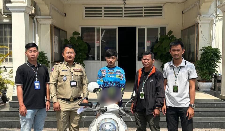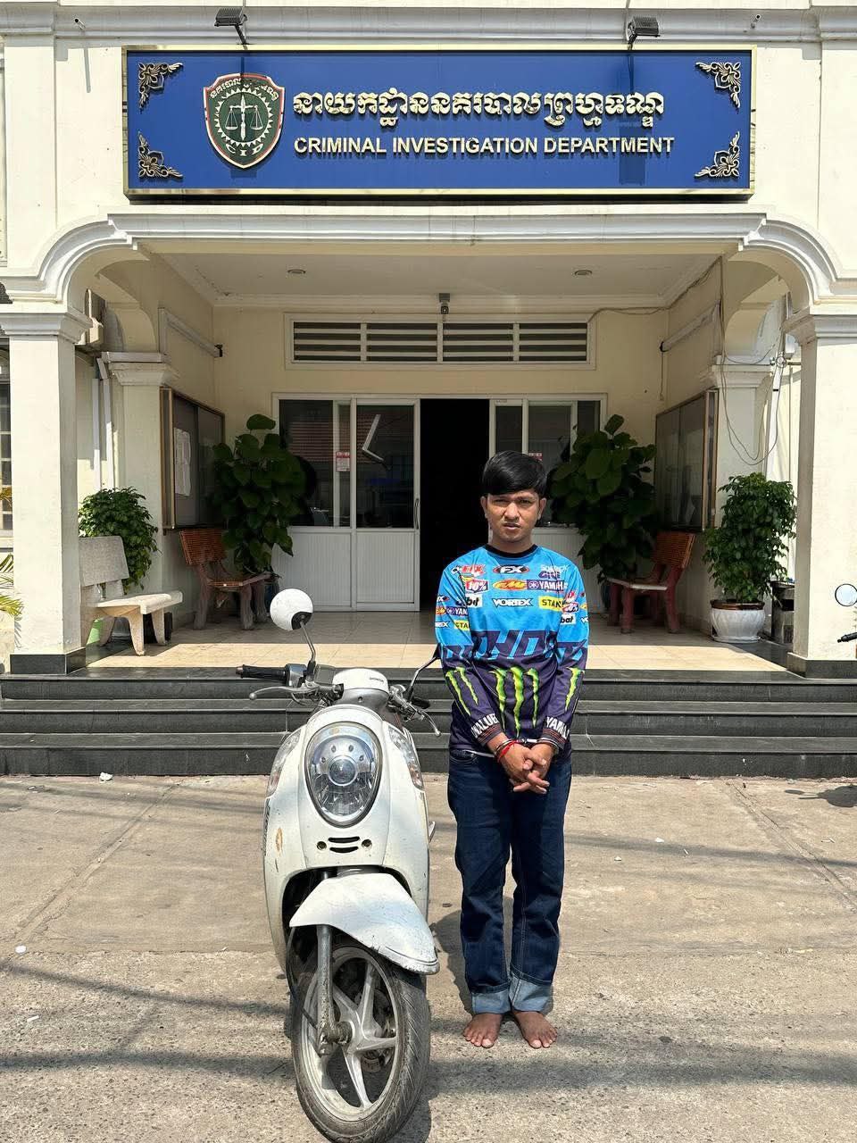 ជនសង្ស័យខាងលើមាន ឈ្មោះ ជួប ច័ន្ទរស្មី ភេទប្រុស អាយុ៣៤ឆ្នាំ ជនជាតិខ្មែរ។ សម្ភារៈដកហូតរួមមាន ម៉ូតូម៉ាក Honda Scoopy ពណ៌ស ពាក់ស្លាកលេខ ភ្នំពេញ 1GR-3848។
