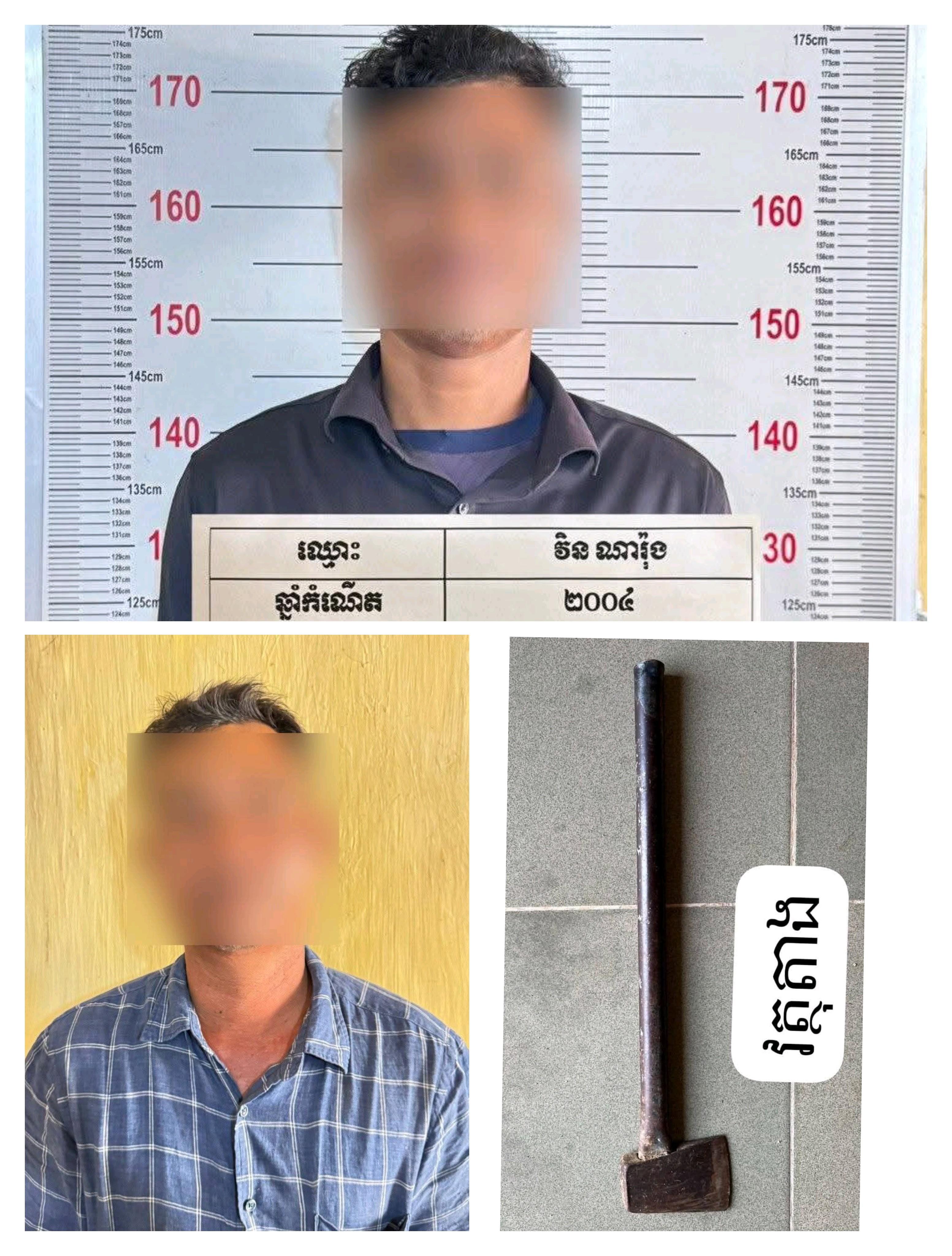 ​សមត្ថកិច្ចឲ្យដឹងថា ជនសង្ស័យដែលត្រូវបានឃាត់ខ្លួនមានឈ្មោះ វិន ណារ៉ុង ភេទប្រុស អាយុ២២ឆ្នាំ មុខរបរមិនពិតប្រាកដ រស់នៅភូមិឃុំកើតហេតុ (មានសារធាតុញៀនក្នុងទឹកនោម និងធ្លាប់ជាប់មណ្ឌលកែប្រែ ៤ខែ)។ ចំណែកឯជនរងគ្រោះត្រូវជាឪពុកបង្កើតមានឈ្មោះ គឹម រ័ត្ន ភេទ ប្រុស អាយុ៤៦ឆ្នាំ មុខរបរកសិករ។ វត្ថុតាងដែលដកហូតបានរួមមាន ពូថៅផ្លែដែកដងដៃ ១ (ប្រវែង ៦២សង់ទីម៉ែត្រ)។