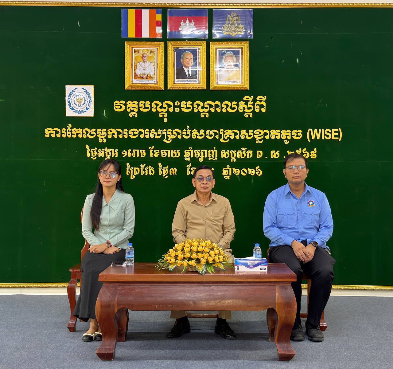 ខេត្តព្រៃវែង៖ នាយកដ្ឋានពេទ្យការងារ នៃក្រសួងការងារ និងបណ្ដុះបណ្ដាលវិជ្ជាជីវៈ និង មន្ទីរការងារ និងបណ្ដុះបណ្ដាលវិជ្ជាជីវៈខេត្តព្រៃវែង បានរៀបចំវគ្គបណ្ដុះបណ្ដាលស្ដីពី «ការកែលម្អការងារសម្រាប់សហគ្រាសខ្នាតតូច (WISE)» នាថ្ងៃទី៣ ខែកុម្ភៈ ឆ្នាំ២០២៦ នៅវិទ្យាស្ថានពហុបច្ចេកទេសខេត្តព្រៃវែង ដោយមានសិក្ខាកាមតំណាងមកពីសហគ្រាស ក្រុមហ៊ុន រោងចក្រចំនួន ១០ ចូលរួម។
