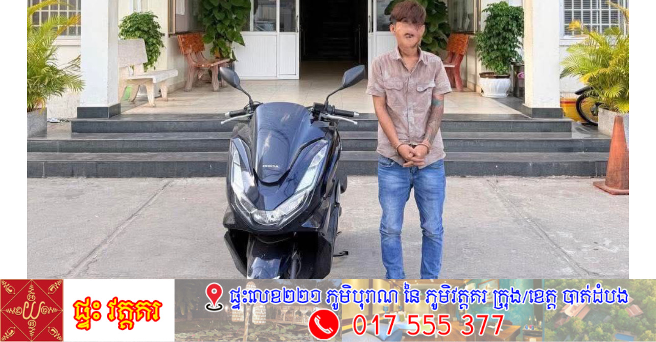 ជនសង្ស័យឈ្មោះ មុន ម៉េងហ័រ ភេទប្រុស អាយុ១៩ឆ្នាំ ជនជាតិខ្មែរ មុខរបរមិនពិតប្រាកដ ស្នាក់នៅបន្ទប់ជួល ភូមិមានជ័យ សង្កាត់ស្ទឹងមានជ័យទី១ ខណ្ឌមានជ័យ រាជធានីភ្នំពេញ រួមទាំងវត្ថុតាងម៉ូតូចំនួន១គ្រឿង ម៉ាក HONDA PCX 125CC ពណ៌ខ្មៅ ផលិតឆ្នាំ២០២២ ពាក់ស្លាកលេខភ្នំពេញ1KV-1957។ ពាក់ព័ន្ធករណី លួចម៉ូតូ និងប្រើប្រាស់សារធាតុញៀន។