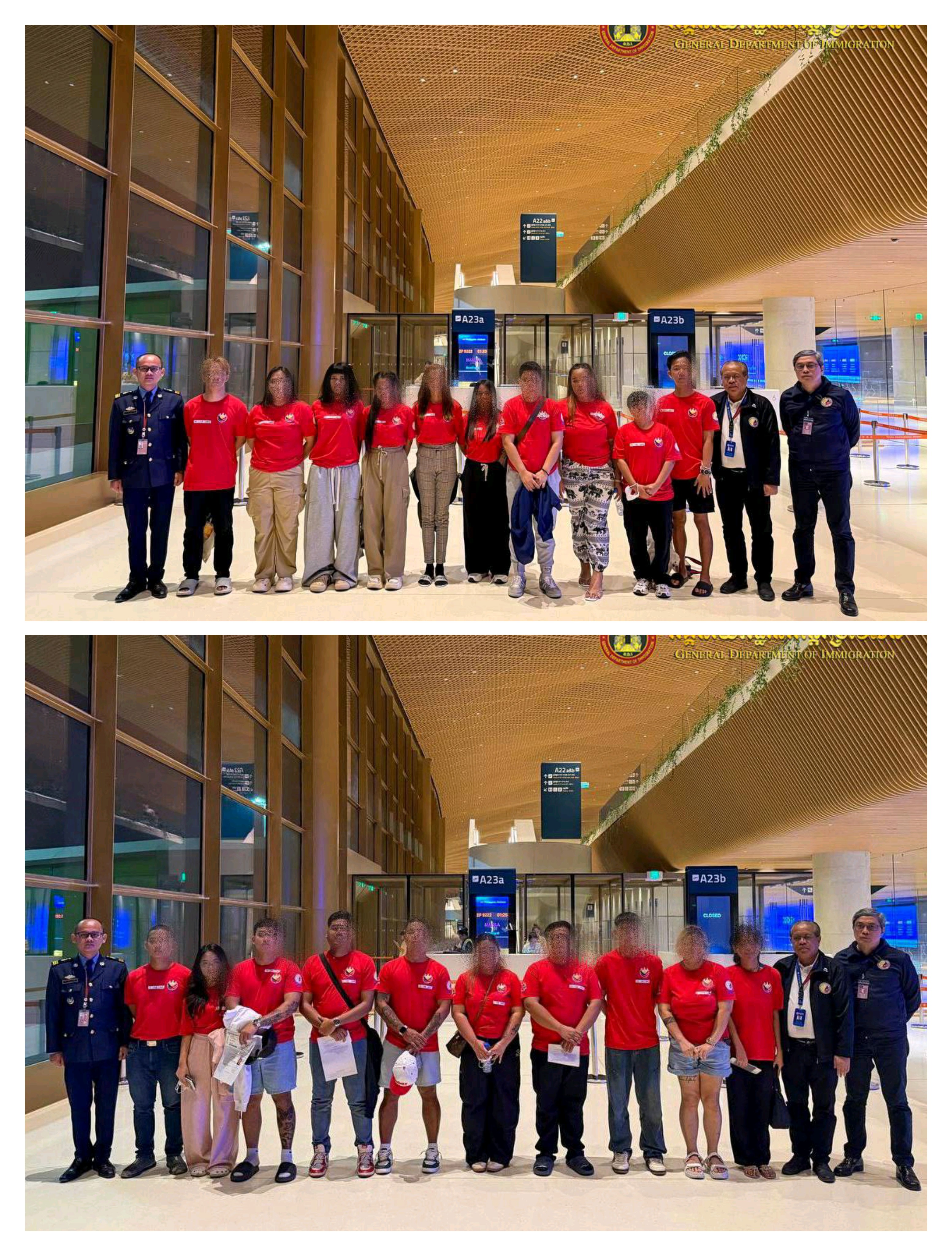 ក្នុងនោះរួមមាន៖ ជនជាតិហ្វីលីពីន ឥណ្ឌា ឥណ្ឌូនេស៊ី ប៉ាគីស្ថាន ចិន កូរ៉េ បង់ក្លាដេស និងម៉ាឡេស៊ីក្នុងនោះមានជនជាតិចិន (២៤១នាក់) ជនជាតិហ្វីលីពីន (១៩០នាក់) ចេញពីព្រះរាជាណាចក្រកម្ពុជា តាមតាមប៉ុស្តិ៍នគរបាលច្រកទ្វារអាកាសអន្តរជាតិតេជោ ដែលពាក់ព័ន្ធករណីលួចឆ្លងដែន ស្នាក់នៅធ្វើការងារខុសច្បាប់ក្នុងព្រះរាជាណាចក្រកម្ពុជា៕