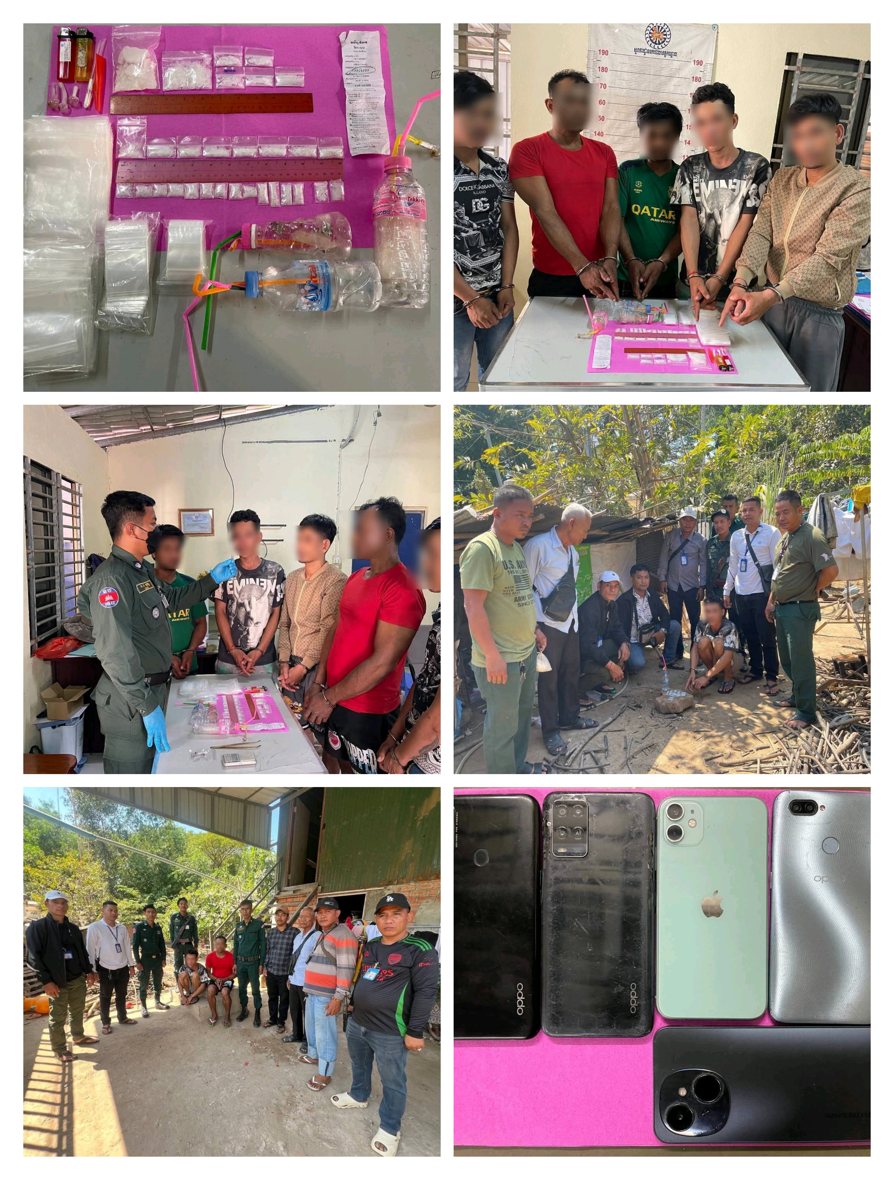 វត្ថុតាងសរុបដែលដកហូតបានក្នុងប្រតិបត្តិការនេះរួមមាន ម្សៅក្រាមសថ្លាសង្ស័យជាសារធាតុញៀន (ម៉ាទឹកកក) ចំនួន៣០កញ្ចប់ (ទម្ងន់ ៣៦,៤៤ក្រាម), ទូរស័ព្ទ៥គ្រឿង, ក្រដាសវេរលុយ និងសម្ភារវេចខ្ចប់មួយចំនួន។ បច្ចុប្បន្ន ជនសង្ស័យទាំង៥នាក់ព្រមទាំងវត្ថុតាង ត្រូវបានសមត្ថកិច្ចជំនាញកសាងសំណុំរឿងបញ្ជូនទៅកាន់សាលាដំបូងខេត្តកណ្ដាល នៅរសៀលថ្ងៃទី៦ ខែកុម្ភៈ ឆ្នាំ២០២៦ ដើម្បីចាត់ការតាមនីតិវិធីច្បាប់៕