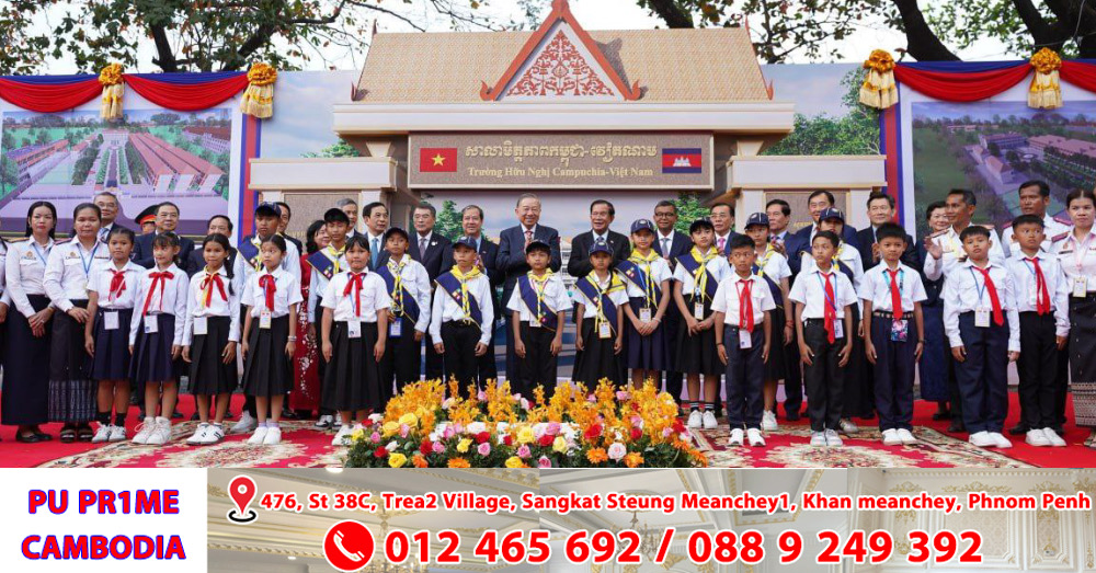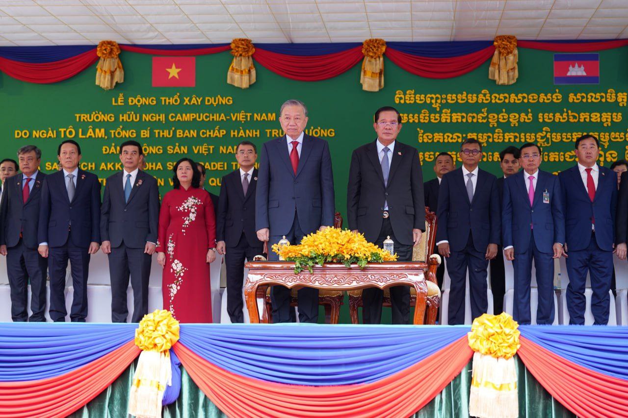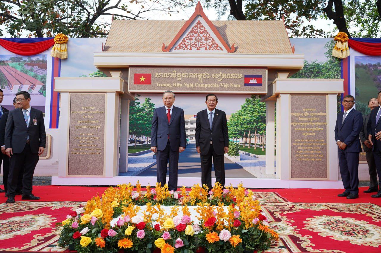 ប្រមុខរដ្ឋស្តីទី សម្តេចតេជោ ហ៊ុន សែន និងលោក តូ ឡឹម អគ្គលេខាធិការបក្សកុម្មុយនីស្តវៀតណាម អញ្ជើញបញ្ចុះបឋម​សិលាសាង​សង់​សាលា​មិត្តភាព​កម្ពុជា-វៀត​ណាម