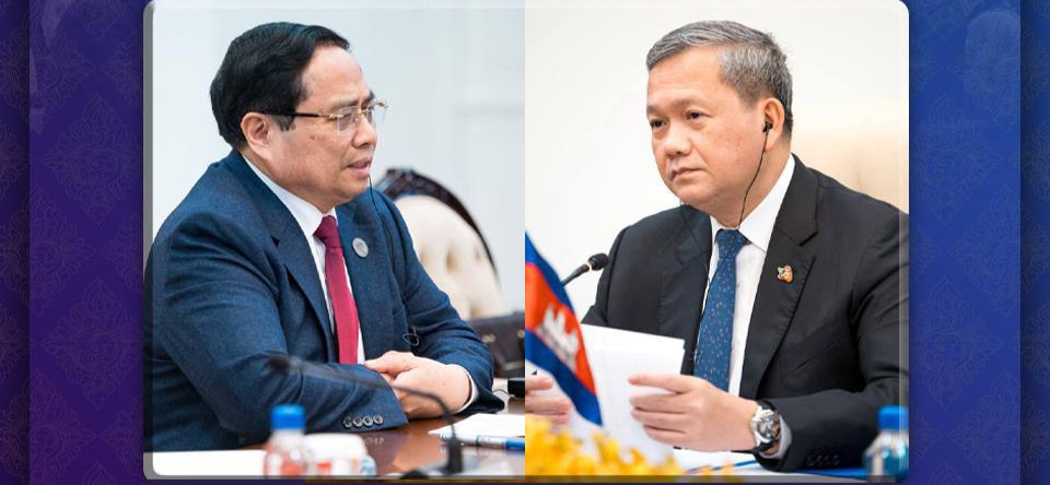 ភ្នំពេញ​៖​ សម្តេចមហាបវរធិបតី ហ៊ុន ម៉ាណែត នាយករដ្ឋមន្រ្តី នៃព្រះរាជាណាចក្រកម្ពុជា នារសៀលថ្ងៃទី០៦ ខែកុម្ភៈ ឆ្នាំ២០២៦​ បានទទួលជួបពិភាក្សាការងារជាមួយ ឯកឧត្តម ផាម មិញជិញ (PHAM Minh Chinh) នាយករដ្ឋមន្ត្រី នៃសាធារណរដ្ឋសង្គមនិយមវៀតណាម នៅវិមាន៧មករា ក្នុងឱកាសដែលឯកឧត្តមនាយករដ្ឋមន្ត្រីវៀតណាម បានដឹកនាំគណៈប្រតិភូ អញ្ជើញចូលរួមកិច្ចប្រជុំរវាងថ្នាក់ដឹកនាំគណបក្សប្រជាជនកម្ពុជា, ថ្នាក់ដឹកនាំគណបក្សកុម្មុយនីស្តវៀតណាម និងថ្នាក់ដឹកនាំគណបក្សប្រជាជនបដិវត្តន៍ឡាវ នៅរាជធានីភ្នំពេញ ព្រះរាជាណាចក្រកម្ពុជា ពីថ្ងៃទី៦ដល់ថ្ងៃទី៧ ខែកុម្ភៈ ឆ្នាំ២០២៦។
