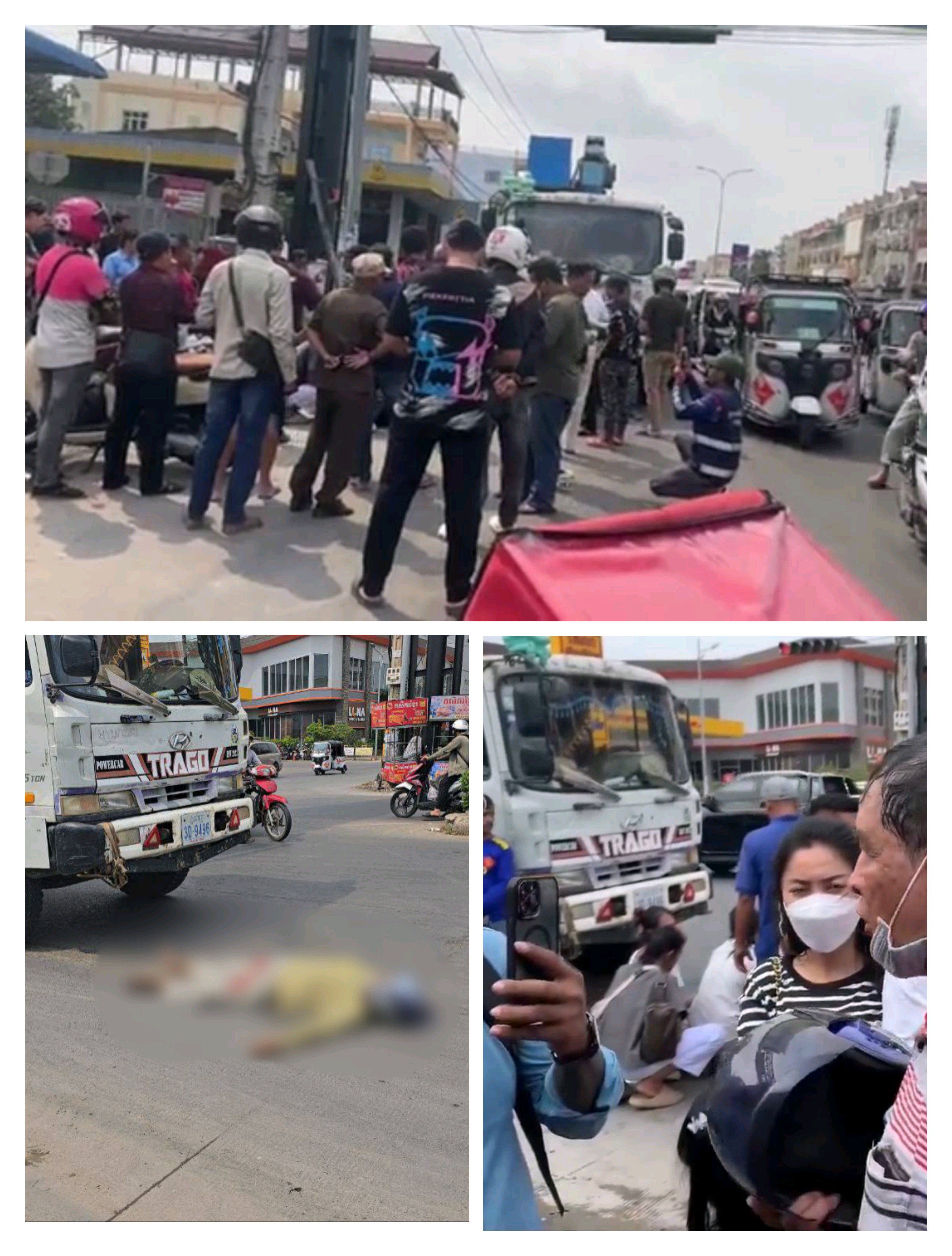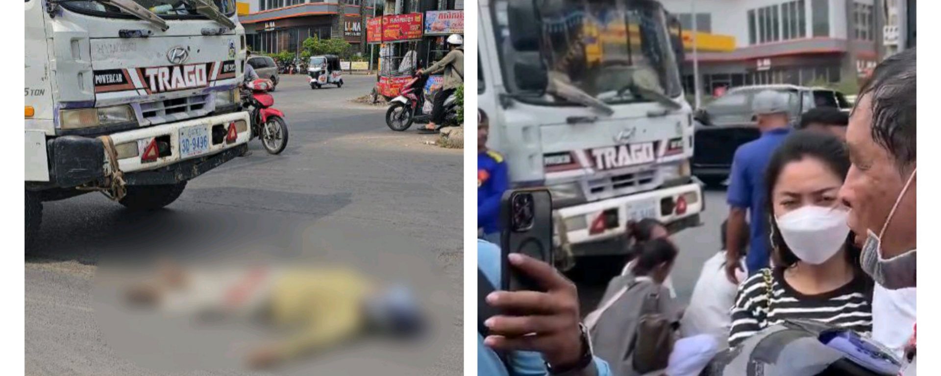 ប្រភពព័ត៌មានបានអោយដឹងថា មុនពេលកើតហេតុមានប្រពលរដ្ឋបានឃើញ យុវជនម្នាក់បានជិះម៉ូតូ ១គ្រឿងម៉ាកNet ពាក់ផ្លាកលេខ ភ្នំពេញ 1JS-1470 បានជិះបំពានភ្លេីងស្តុបហើយក៏បានជ្រុលបុកពីរនាក់ប្តីប្រពន្ធកំពុងជិះម៉ូតូសេ១២៥ ពាក់ផ្លាកលេខ ភ្នំពេញ 1FP-8154បណ្តាលអោយស្ត្រីជាប្រពន្ធបានខ្ទាតទៅកណ្តាលផ្លូវត្រូវរថយន្តស្ទូចពាក់ផ្លាកលេខ ភ្នំពេញ 3D-9496កំពុងបេីកពីក្រោយជាន់ហ្វ្រាំងមិនទាន់ក៏កិនស្ត្រីនោះស្លាប់ភ្លាមៗ នៅនិងកន្លែងកើតហេតុតែមង្ត។