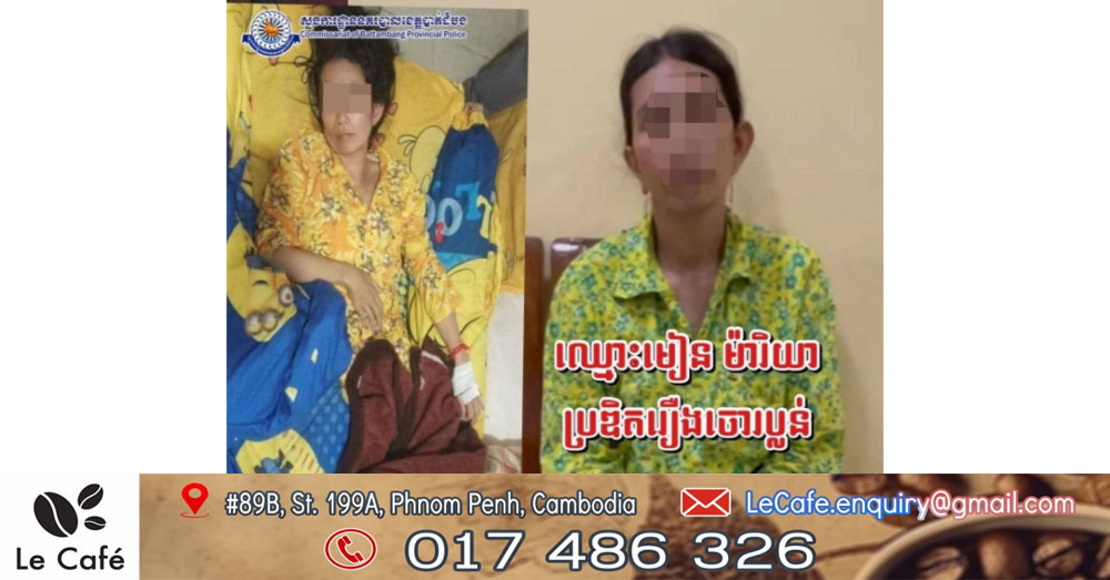ដោយឡែកស្រ្តីឈ្មោះមៀន ម៉ារិយា អាយុ៣៦ឆ្នាំរស់នៅភូមិកាប់គោថ្មីសង្កាត់អូរចារ ក្រុងបាត់ដំបង ក៏បានអះ អាងថា ខ្លួនត្រូវជនសង័្សយប្រេីកាំបិតគំរាមប្លន់យកកាបូបដែលមានប្រាក់ដុល្លានិងគ្រឿងអលង្កការផងប្រមាណជាជាង២.០០០ដុល្លា(ពីរពាន់ដុល្លា)នាថ្ងៃដដែលនេះ។