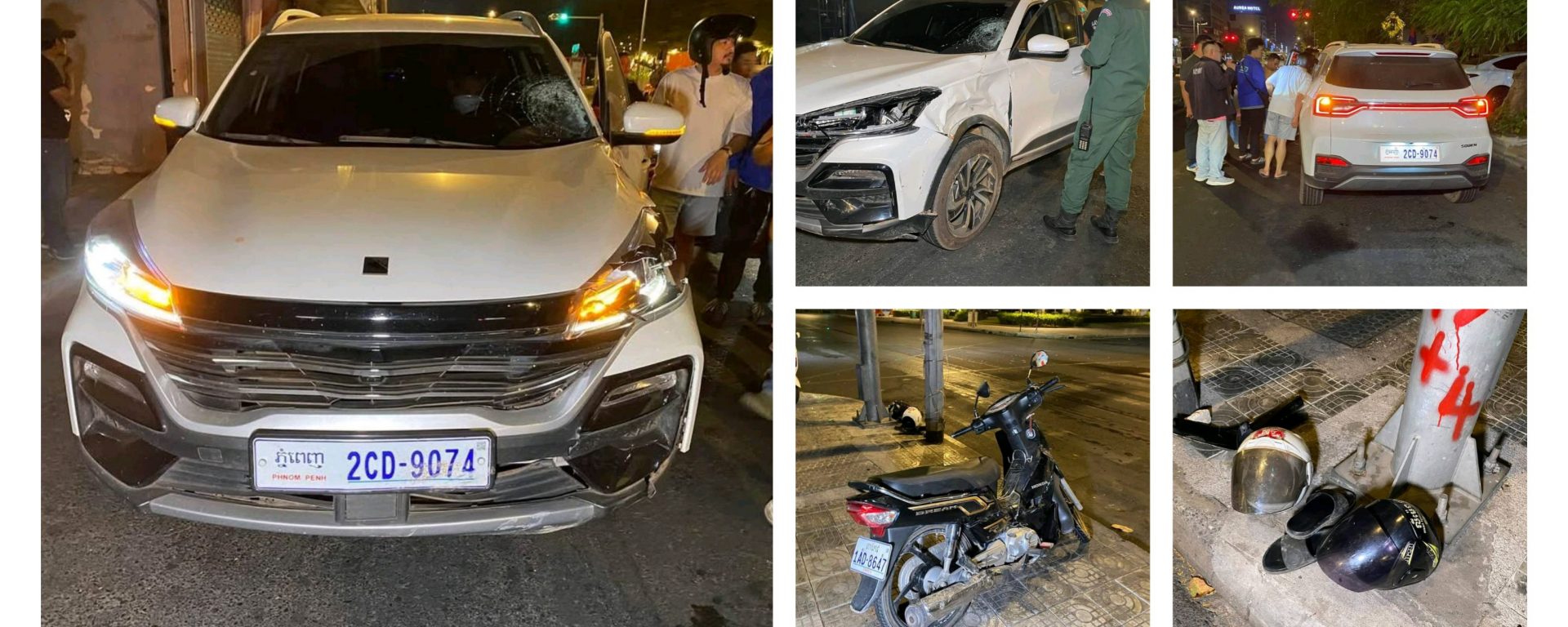 ប្រភពព័ត៌មានបានអោយដឹងថា មុនពេលកើតហេតុមានប្រពលរដ្ឋបានឃើញ យុវជន ពី នាក់រង របួស ធ្ងន់ បញ្ជូនទៅមន្ទី រពេទ្យ បន្ទាប់ ពី ជិះម៉ូតូមួយគ្រឿង មួយ ម៉ាក HONDA DREAM ពាក់ ផ្លាក លេខ តាកែវ 1AD-8647 បានជិះទៅបុករថយន្ត មួយគ្រឿង ម៉ាក SOBEN ពាក់ ផ្លាក លេខ ភ្នំពេញ 2CD-9074 និងបណ្តាល អោយ រថយន្ត និងម៉ូតូរង ការ ខូចខាត យ៉ាង ដំណំ ។