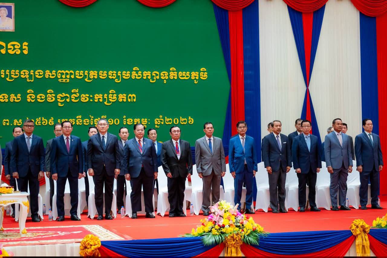 ភ្នំពេញ : សូមអបអរសាទរចំពោះជ័យលាភីសិស្សនិទ្ទេស A សញ្ញាបត្រមធ្យមសិក្សាទុតិយភូមិ និងជ័យលាភីសញ្ញាបត្របច្ចេកទេស និងវិជ្ជាជីវៈកម្រិត ៣ ក្នុងឆ្នាំសិក្សា២០២៤-២០២៥ ។ នេះជាការលើកឡើងរបស់លោក ហ៊ុន ម៉ានី ឧបនាយករដ្ឋមន្ត្រី រដ្ឋមន្ត្រីក្រសួងមុខងារសាធារណៈ នៅថ្ងៃទី១១ ខែកុម្ភៈ ឆ្នាំ២០២៦ លើផេកផ្ទាល់ខ្លួនរបស់លោក ។