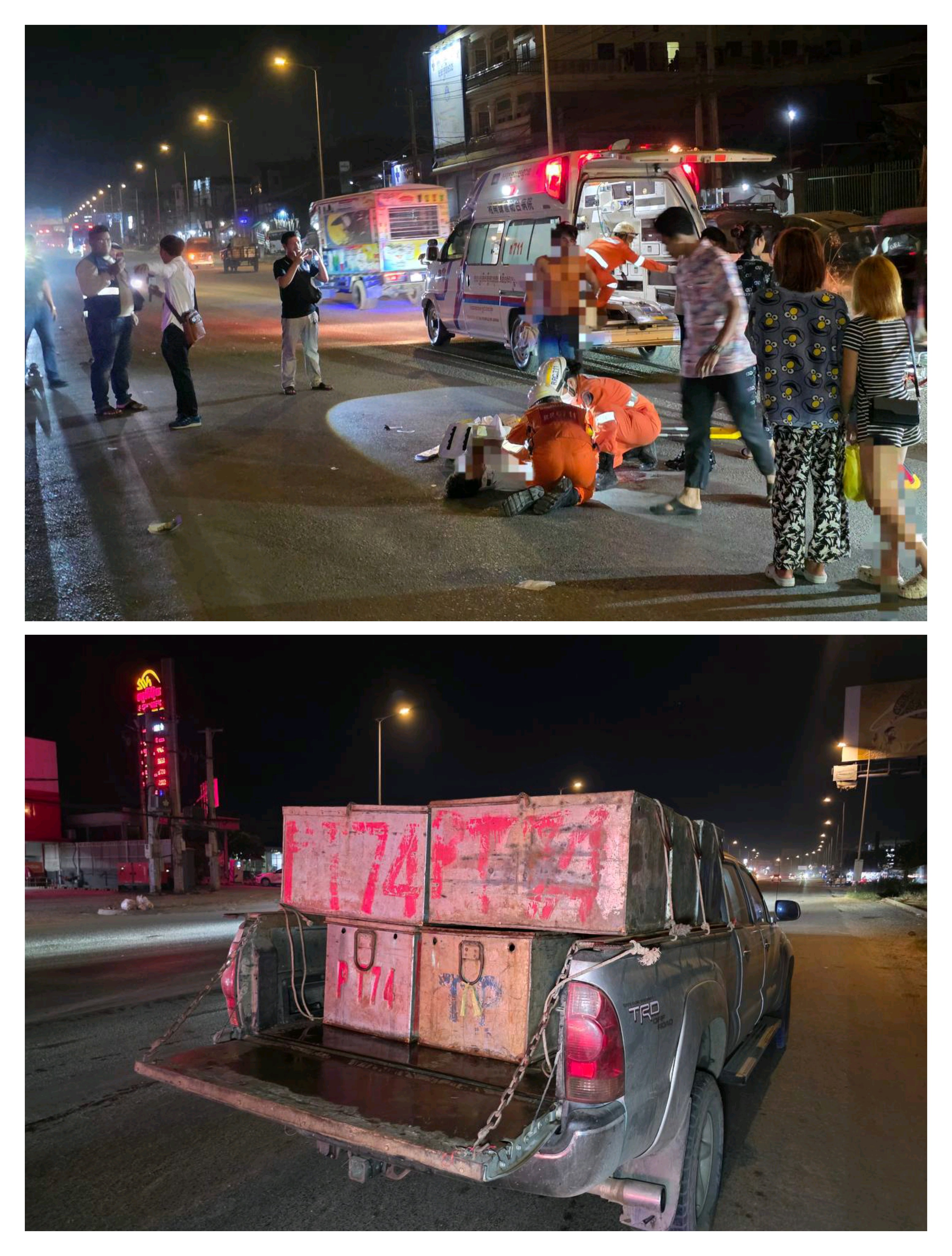រថយន្តដឹកត្រីជ្រុលបុកម៉ូតូបណ្តាលឱ្យរបួស២នាក់ត្រូវបានកងសង្គ្រោះ៧១១​ កងពលតូចលេខ៧០ដឹកយកទៅមន្ទីរពេទ្យ