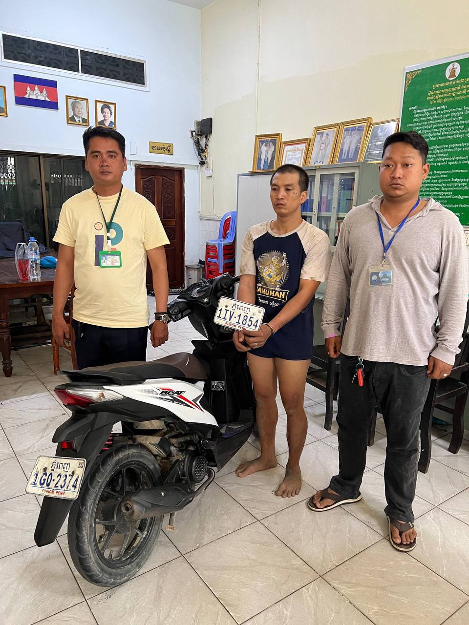 តាមការបញ្ជាក់ពីសមត្ថកិច្ចបានឱ្យដឹងថា ដោយនៅវេលាម៉ោង ០២ និង៥០នាទី នាថ្ងៃដដែល សមត្ថកិច្ច បានឃាត់ខ្លួនជនសង្ស័យនៅចំណុចភូមិដើមចាន់ សង្កាត់ច្បារអំពៅ២ ខណ្ឌច្បារអំពៅ រួមនិងដកហូតម៉ូតូរបស់ជនរងគ្រោះម៉ាកហុងដាប៊ីត ពណ៌ស ពាក់ស្លាកលេខ ភ្នំពេញ 1GQ-2374 និង ស្លាកលេខ ភ្នំពេញ 1IV-1854 (ជនសង្ស័យលាក់ ក្រោមកម្រាលជើងម៉ូតូ) បញ្ជូនមកប៉ុស្តិ៍នគរបាលរដ្ឋបាលច្បារអំពៅ២ ធ្វើការសួរនាំ ។