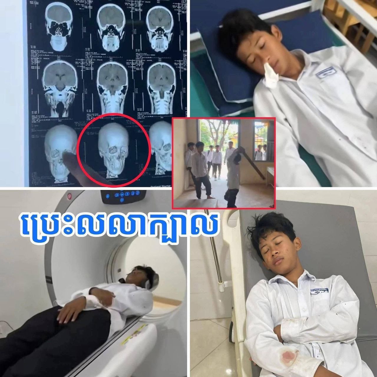 ជនរងគ្រោះឈ្មោះ អៀង ពៅ ភេទប្រុស អាយុ១៤ឆ្នាំ ជនជាតិខ្មែរ មុខរបរ សិស្ស ថ្នាក់ទី៧ “គ” នៃសាលាអនុវិទ្យាល័យសម្តេចឪ មានទីលំនៅភូមិ៣ សង្កាត់លេខ២ ក្រុងព្រះសីហនុ ខេត្តព្រះសីហនុ បានរងរបួសប្រះលលាដ៏ក្បាលខាងមុខ ហើយសាច់ញាតិក្រុមគ្រួសារដឹកបញ្ជូនទៅព្យាបាលនៅមន្ទីរពេទ្យគន្ធបុប្ផា រាជធានីភ្នំពេញ។