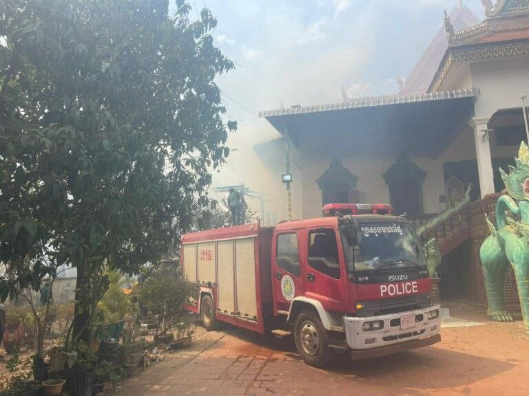 ឆ្លង​ចរន្តអគ្គិសនី​ឆេះ​កុដិ​ឈើ​ទាំង​កណ្ដាលថ្ងៃ​ត្រង់រថយន្តពន្លត់​អគ្គិភ័យ​៣​គ្រឿង​ចេញ​អន្តរា​គមន៍