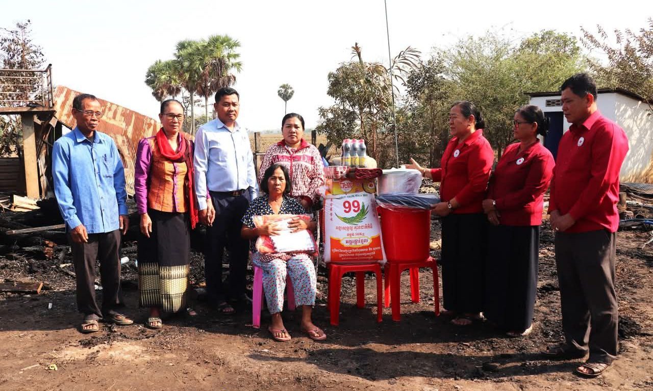 ខេត្តស្វាយរៀង: ប្រជាពលរដ្ឋរងគ្រោះដោយសារអគ្គីភ័យ ១ គ្រួសារ ក្នុងស្រុកស្វាយជ្រំ បានទទួលអំណោយមនុស្សធម៌ពីសាខាកាកបាទក្រហមកម្ពុជា ខេត្តស្វាយរៀង។