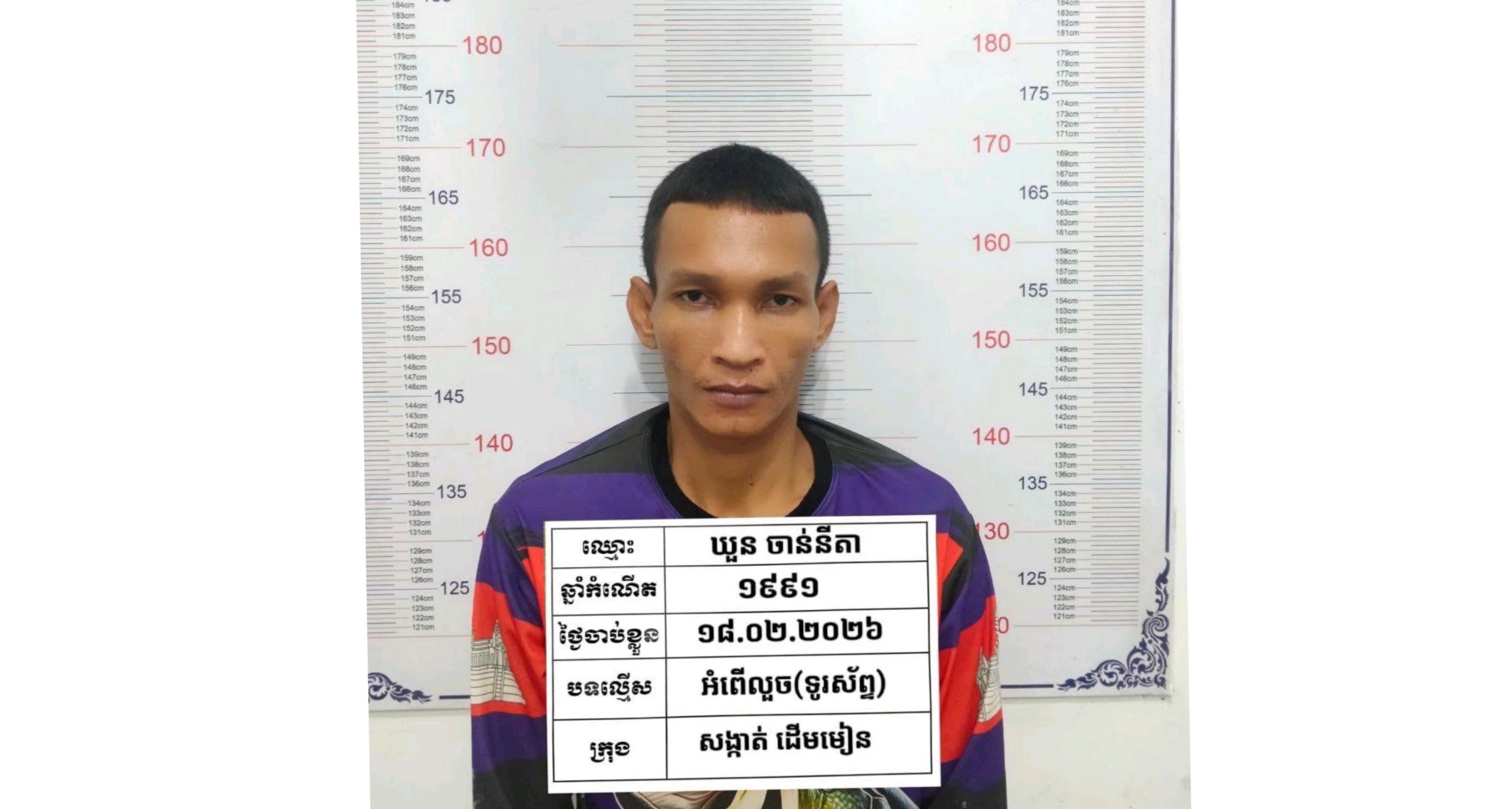 ខេត្តកណ្ដាល៖ ជនសង្ស័យម្នាក់ ជាមុខសញ្ញាជាប់ពន្ធនាគារ ត្រូវបានសមត្ថកិច្ចក្រុងតាខ្មៅចាប់ខ្លួន ក្រោយពីធ្វើសកម្មភាពលួចទូរស័ព្ទដៃគេ២គ្រឿង កាលពីថ្ងៃទី១៤ ខែកុម្ភៈ ឆ្នាំ២០២៦ ម៉ោង២៣និង៣០នាទី