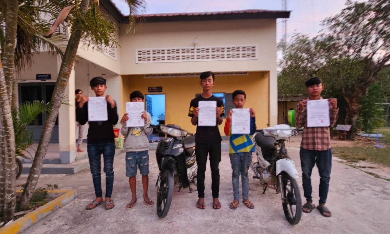 ខេត្តស្វាយរៀង: កម្លាំងជំនាញនគរបាលស្រុកស្វាយទាប ចុះបង្រ្កាបក្មេងទំនើងបង្ហោះម៉ូតូ៥នាក់ យកមកអប់រំនិងធ្វើកិច្ចសន្យា បន្ទាប់ពីបង្ហោះម៉ូតូ តាមផ្លូវសាធារណៈ។