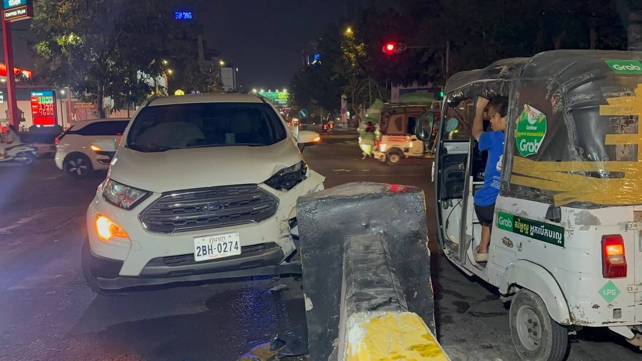 ភ្នំពេញ៖ នារីម្នាក់បេីករថយន្តមួយគ្រឿងលឿនមិនប្រយ័ន្នក៏ជ្រុលទៅបុកនិងរបាំងថ្មពុះចែកទ្រូងផ្លូវពេញទំហឹងបណ្តាលឱ្យរងការខូចខាតទៅមុខលែងរួច ។