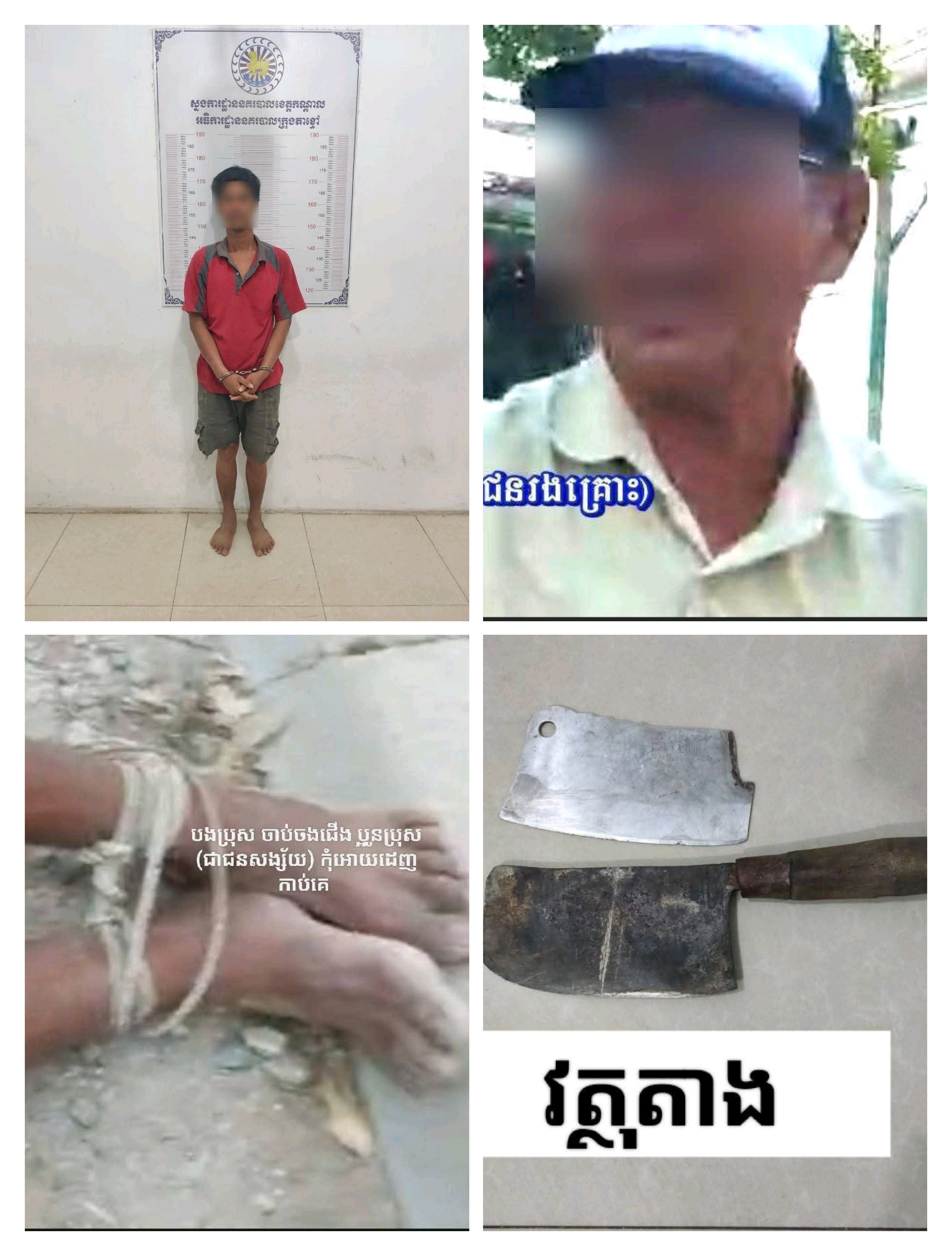 ខេត្តកណ្តាល÷ បុរសម្នាក់ដោយសារតែឥទ្ធិពលស្រាបញ្ជាបានទាស់សម្ដីជាមួយបងថ្លៃ ហើយត្រូវឪពុកបងថ្លៃមកស្ដីបន្ទោស ក៏ខឹងច្រឡោតទាញកាំបិតប៉័ងតោដេញកាប់ និងកាប់បំផ្លាញកញ្ចក់រថយន្ត។ ភ្លាមៗនោះ ជនសង្ស័យត្រូវបានម្ដាយ និងបងប្រុសបង្កើត រួមទាំងអ្នកជិតខាងជួយចាប់ចងប្រគល់ឲ្យសមត្ថកិច្ច។ ហេតុ ការណ៍ហិង្សានេះបានកើតឡើងកាលពីថ្ងៃទី២២ កុម្ភៈ ២០២៦ វេលាម៉ោង ១៥ និង០០នាទី នៅភូមិទួលក្រសាំង សង្កាត់រកាខ្ពស់ ក្រុងតាខ្មៅ ខេត្តកណ្តាល។