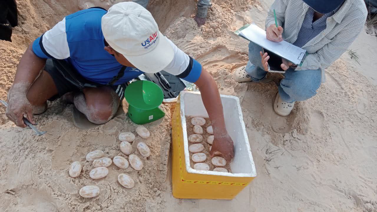 សូមបញ្ជាក់ថា ក្រុមការងារបានរកឃើញសំបុកអណ្តើកហ្លួង២ទីតាំងក្នុងឆ្នាំ២០២៤ ពុំមានរកឃើញក្នុងឆ្នាំ ២០២៥ និងរកឃើញឡើងវិញ៣ទីតាំងនាដើមឆ្នាំ ២០២៦ នេះ។ សកម្មភាពទម្លាក់ពងអណ្តើកហ្លួងក្នុងជម្រកធម្មជាតិនេះ បានបញ្ជាក់អំពីសុខភាពល្អនៃអណ្តើកហ្លួង ជម្រក និងអេកូឡូស៊ីនៃប្រព័ន្ធព្រែកស្រែអំបិល ខេត្តកោះកុងនិងខេត្តព្រះសីហនុ។