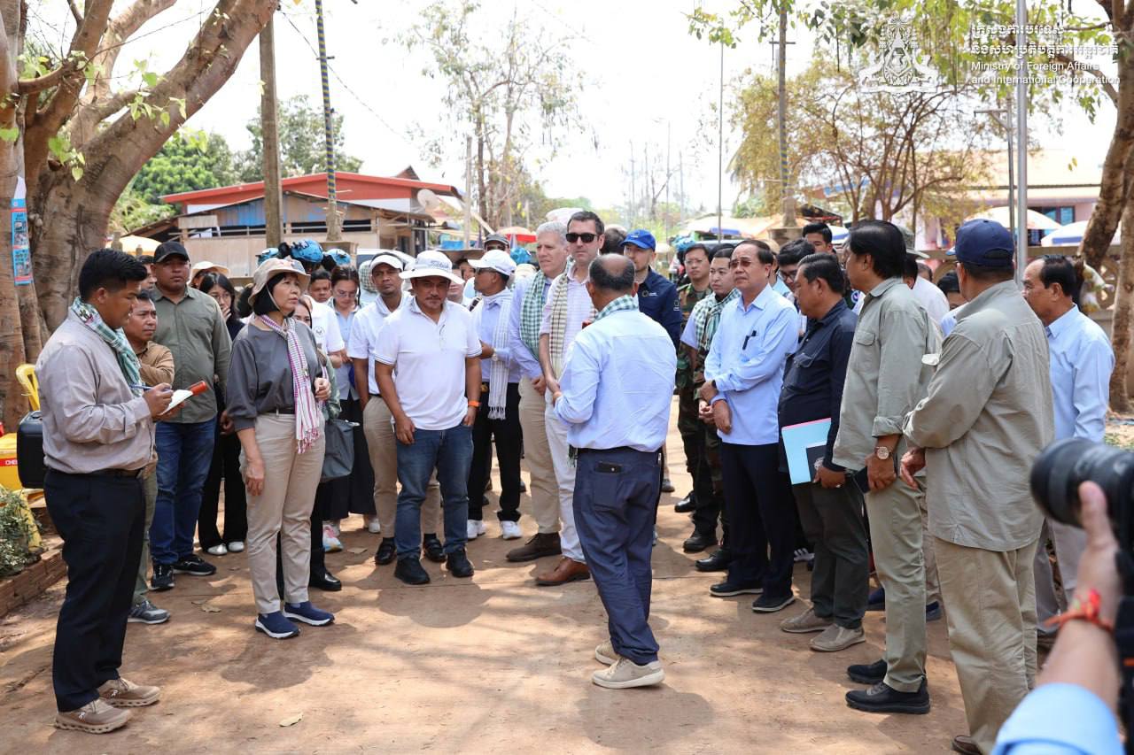 ខេត្តបន្ទាយមានជ័យ៖ ក្រសួងការបរទេស និងសហប្រតិបត្តិការអន្តរជាតិ នៅថ្ងៃទី២៧ ខែកុម្ភៈ ឆ្នាំ២០២៦នេះ បានឱ្យដឹងថា លោកស្រី អ៊ាត សោភា រដ្ឋមន្ត្រីស្តីទីនៃក្រសួងការបរទេស និង សហប្រតិបត្តិការអន្តរជាតិ កាលពីថ្ងៃទី២៣ ខែកុម្ភៈ ឆ្នាំ២០២៦ បានដឹកនាំសមាជិកអង្គទូតបរទេស និងទីភ្នាក់ងារអង្គការសហប្រជាជាតិប្រចាំកម្ពុជា ទៅកាន់ទីតាំងចំនួន៣ ស្ថិតក្នុងខេត្តបន្ទាយមានជ័យ រួមមាន ភូមិជោគជ័យ ភូមិព្រៃចាន់ និងតំបន់បឹងត្រកួន។ ទីតាំងទាំងនេះត្រូវបានគ្រប់គ្រងដោយកងទ័ពថៃ ក្នុងអំឡុងពេលនៃការវាយប្រហារឈ្លានពាន កាលពីខែធ្នូ ឆ្នាំមុន។ ពលរដ្ឋភៀសសឹកពីតំបន់ទាំងបីនេះ នៅមិនទាន់អាចវិលត្រឡប់ទៅកាន់ផ្ទះសម្បែងរបស់ខ្លួនបាននៅឡើយដោយសារ ផ្ទះរបស់ពួកគាត់ត្រូវបានហ៊ុមព័ទ្ធដោយបន្លាលួស និងទូកុងតឺន័របិទផ្លូវ ហើយផ្ទះសម្បែង និងរចនាសម្ព័ន្ធនានា ត្រូវបានបំផ្លិចបំផ្លាញ ចាប់តាំងពីបទឈប់បាញ់កាលពីថ្ងៃទី២៧ ខែធ្នូ ឆ្នាំ២០២៥ មកម៉្លេះ។