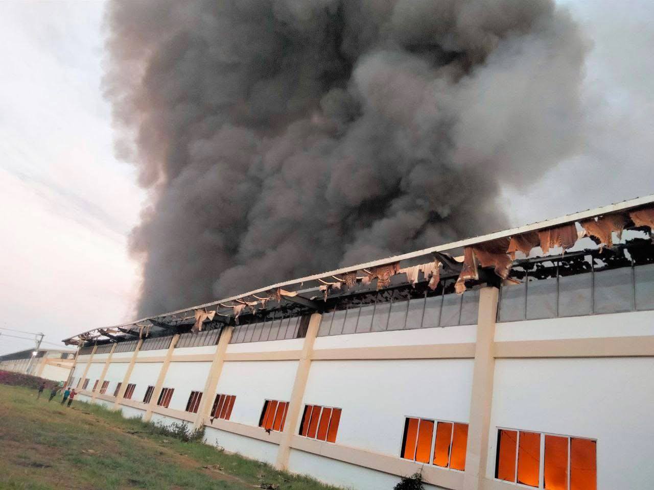 អគ្គិភ័យឆាបឆេះអគាររោងចក្រអេឡិចត្រូនិកទាំងស្រុងនៅជិតស្ទឹងស្លាគូ ខេត្តតាកែវ