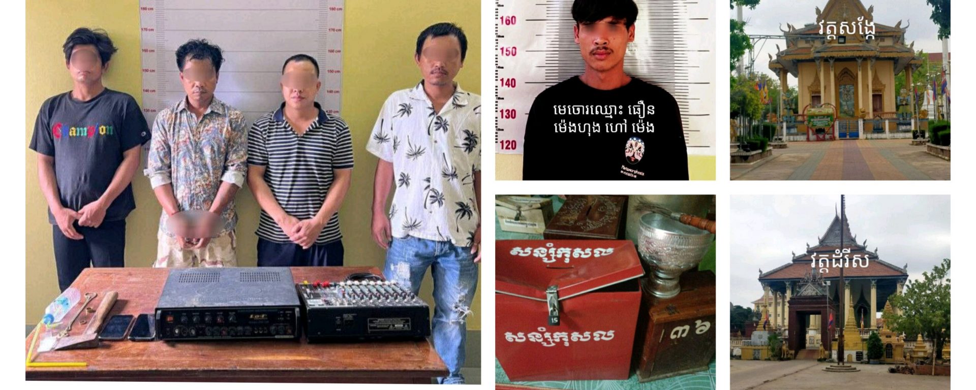 កម្លាំង​កងរាជអាវុធហត្ថ​ស្រាវជ្រាវចាប់​បាន​ជនសង្ស័យ​៤​នាក់​ដែល​សមគំនិត​​គ្នា​លួច​ទ្រព្យសម្បត្តិ​ក្នុង​វត្ត​ប្រគល់​ជូន​​តុលា​ការ