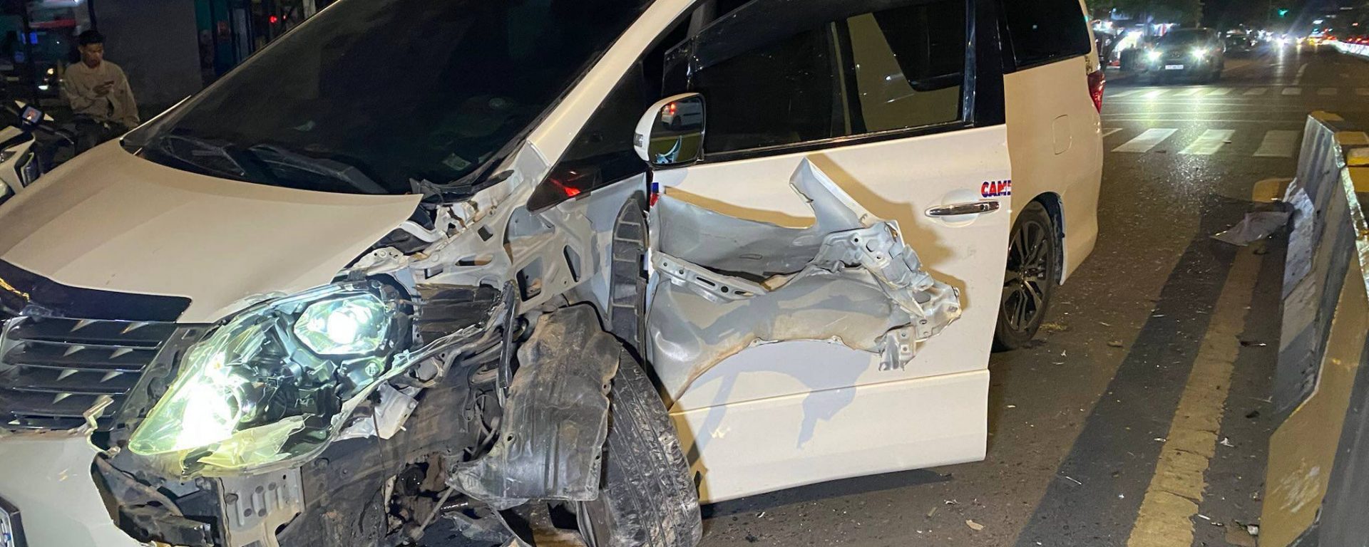 រថយន្ដ TOYOTA ALPHARDមួយគ្រឿងបុករបាំងថ្មពុះចែកទ្រូងផ្លូវរងការខូចខាតយ៉ាងដំណំ