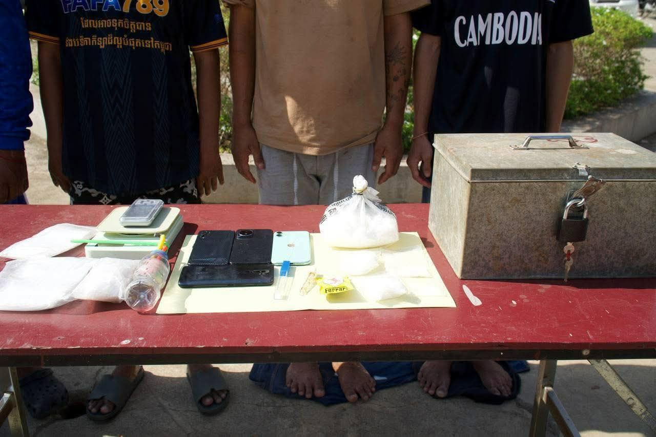 សមត្ថកិច្ចបន្តថាៈនៅវេលាម៉ោង១២និង០៥នាទីថ្ងៃទី២៨ ខែកុម្ភៈ ឆ្នាំ២០២៦ កម្លាំងមូលដ្ឋានកងរាជអាវុធហត្ថក្រុងសិរីសោភ័ណ ដឹកនាំដោយលោក វរសេនីយ៍ត្រីសុខ ឡេង មេបញ្ជាការមូលដ្ឋានកងរាជអាវុធហត្ថក្រុងបានធ្វើប្រតិបត្តិការបង្រ្កាបករណីជួញដូរ រក្សាទុក និងប្រើប្រាស់ដោយខុសច្បាប់នូវសារធាតុញៀន ឃាត់ខ្លួនជនសង្ស័យចំនួន៤នាក់ ១-ឈ្មោះ ចាប ចំរើន ហៅ មើន ភេទ ប្រុស អាយុ២៩ឆ្នាំ ជនជាតិខ្មែរ, ២-ឈ្មោះ ហង្ស រស្មី ភេទប្រុស អាយុ១៩ឆ្នាំ ជនជាតិខ្មែរ, ៣-ឈ្មោះ ឈុំ ចំរើន ហៅ ង៉ា ភេទប្រុស អាយុ៣១ឆ្នាំ ជនជាតិខ្មែរ, ៤-ឈ្មោះ រ៉េត ដានិត ភេទប្រុស អាយុ២៧ឆ្នាំ ជនជាតិខ្មែរ នៅចំណុចបន្ទប់ជួល ស្ថិតក្នុងភូមិខ្លាកូនថ្មី សង្កាត់កំពង់ស្វាយ ក្រុងសិរីសោភ័ណ ព្រមទាំង ដកហូតវត្ថុតាងគ្រឿងញៀនប្រភេទម្ស៉ៅក្រាមពណ៌សថ្លា (ICE) ចំនួន០១កញ្ចប់ធំ និង០៤ថង់កិប ទម្ងន់ ៦៩៣,៩ក្រាម, កញ្ចប់ម្ស៉ៅពណ៌លឿងមានរូបសេះពណ៌ក្រហម (អ៊ិចស្តាស៊ី) ចំនួន០១កញ្ចប់ ទម្ងន់ ៥,៥០ក្រាម, ម៉ូតូ ចំនួន០២គ្រឿង, ទូរស័ព្ទចំនួន ០៤គ្រឿង, ញ្ជីងសម្រាប់ថ្លឹងគ្រឿងញៀន ចំនួន ០២គ្រឿង រួមនឹងសម្ភារៈសម្រាប់ប្រាស់គ្រឿងញៀនមួយចំនួន ហើយនាំមកកាន់មូលដ្ឋានកងរាជអាវុធហត្ថក្រុងដើម្បីសួរនាំតាមនីតិវិធី។ លោកវរសេនីយ៍ត្រី សុខ ឡេង មេបញ្ជាការមូលដ្ឋានកងរាជអាវុធហត្ថក្រុងបានឱ្យដឹងថា ក្រោយឃាត់ខ្លួន និងសួរនាំរួច ជនសង្ស័យបានឆ្លើយសារភាពថា ពួកខ្លួនពិតជាបាន ជួញដូរ រក្សាទុក និងប្រើប្រាស់ដោយខុសច្បាប់នូវសារធាតុញៀនពិតប្រាកដមែន។