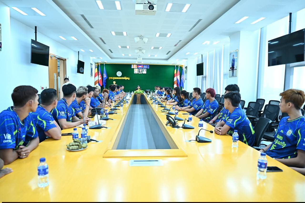 នាព្រឹកថ្ងៃទី៣ ខែមីនា ឆ្នាំ២០២៦ លោក ឧត្តមសេនីយ៍ឯក ជួន ណារិន្ទ អគ្គស្នងការរង និងជាស្នងការនគរបាលរាជធានីភ្នំពេញ និងជាអនុប្រធានសហព័ន្ធកីឡាបាល់ទះកម្ពុជា បាន អនុញ្ញាតឱ្យក្រុមកីឡាករ-កីឡាការិនី គ្រូបង្វឹក និងក្រុមការងារ នៃក្លិបកីឡាបាល់ទះស្នងការដ្ឋាននគរបាលរាជធានីភ្នំពេញ ដឹកនាំដោយលោកឧត្តមសេនីយ៍ទោ តឹង សុធី ប្រធានប្រតិភូ ចូលជួបសំណេះសំណាល នៅសាលប្រជុំ នៃស្នងការដ្ឋាននគរបាលរាជធានីភ្នំពេញ។
