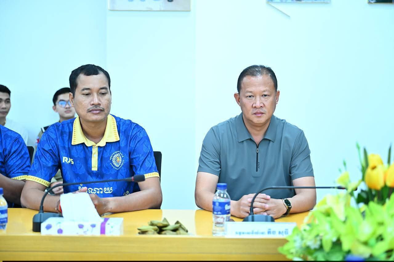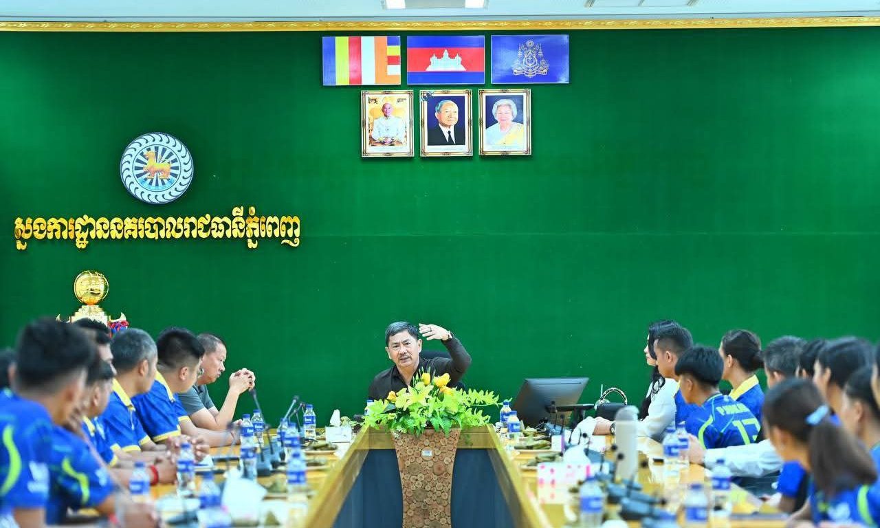 ភ្នំពេញ : លោកឧត្តមសេនីយ៍ឯក ជួន ណារិន្ទ អគ្គស្នងការរង និងជាស្នងការនគរបាលរាជធានីភ្នំពេញ និងជាអនុប្រធានសហព័ន្ធកីឡាបាល់ទះកម្ពុជា អញ្ជេីញជួបសំណេះសំណាលជាមួយក្រុមកីឡាករ-កីឡាការិនី គ្រូបង្វឹក និងក្រុមការងារ នៃក្លិបកីឡាបាល់ទះស្នងការដ្ឋាននគរបាលរាជធានីភ្នំពេញ ។