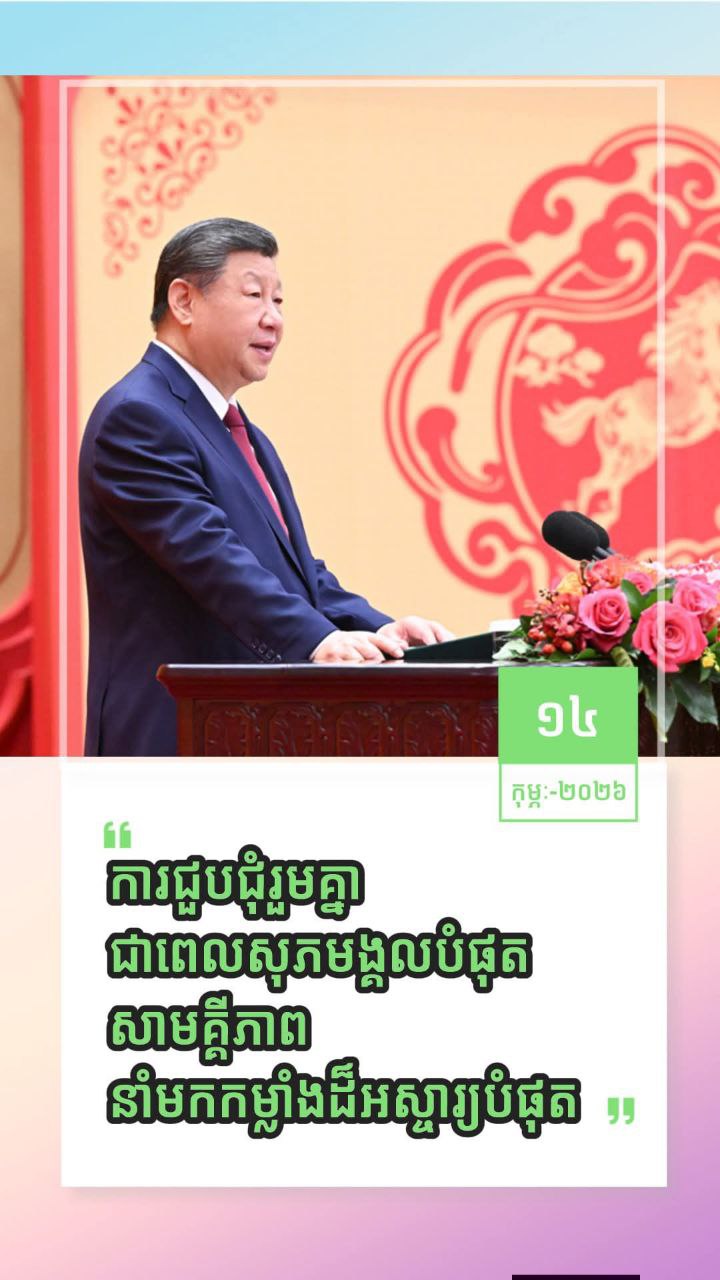 លោក Xi Jinping បានសង្កត់ធ្ងន់ថា ការជួបជុំគ្នាជាពេលដែលរីករាយបំផុត ការជួបជុំរួមគ្នាជាពេលវេលាសុភមង្គលបំផុត សាមគ្គីភាពនាំមកនូវកម្លាំងដ៏អស្ចារ្យបំផុត។ កុំឱ្យគម្លាតឆ្ងាយកាត់ផ្តាច់នូវមនោសញ្ចេតនាពិតជាមួយក្រុមគ្រួសារ កុំបំភ្លេចមនោសញ្ចេតនាពិតដោយសារការមមាញឹកលើការងារប្រចាំថ្ងៃ ។ ប្រជាជាតិចិនយកចិត្តទុកដាក់ខ្ពស់លើក្រុមគ្រួសារ ដោយសម្គាល់ឃើញថា ភាពសុខសានក្នុងក្រុមគ្រួសារនោះជាកត្តាជោគជ័យលើកិច្ចការទាំងមូល។ ការអភិវឌ្ឍប្រទេសនិងការស្តារប្រជាជាតិឱ្យរុងរឿងឡើងវិញ នៅទីបំផុតគឺបង្ហាញពីរាប់សិបលានក្រុមគ្រួសារ សុទ្ធតែទទួលបាននូវសុភមង្គល ក៏ដូចជាការធ្វើអោយប្រសើរឡើងនូវជីវភាពរស់នៅរបស់ប្រជាជនរាប់រយលាននាក់ ៕