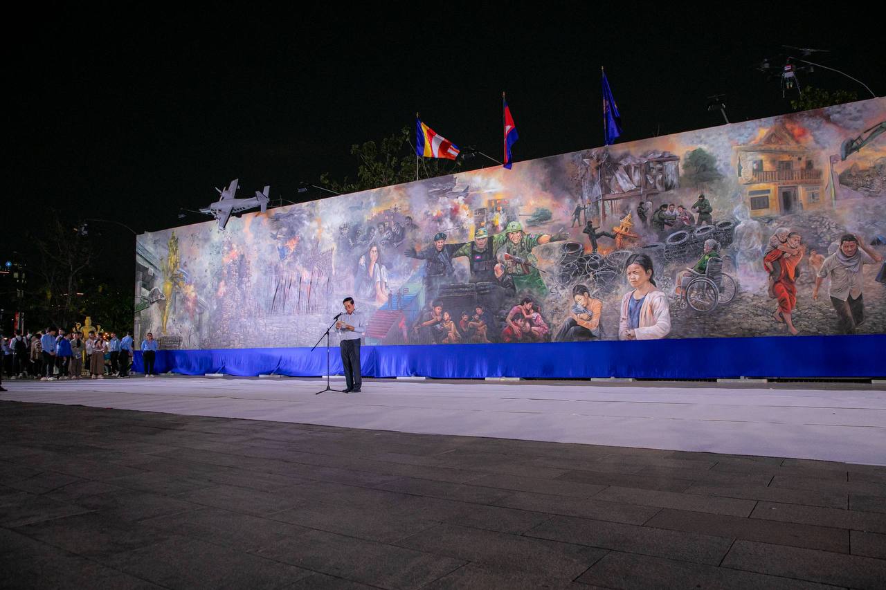 ភ្នំពេញ៖ ផ្ទាំងគំនូរ “សិល្បៈដើម្បីសន្តិភាព” ដែលស្ថិតនៅសួនច្បារវត្តបទុមវតី សង្កាត់ចតុមុខ ខណ្ឌដូនពេញ បានបើកបង្ហាញជាផ្លូវការនាល្ងាចថ្ងៃទី៣ ខែមីនា ឆ្នាំ២០២៦នេះ ក្រោមអធិបតីភាពលោក ហ៊ុន ម៉ានី ឧបនាយករដ្ឋមន្ត្រី រដ្ឋមន្ត្រីក្រសួងមុខងារសាធារណៈនិងជាប្រជាប្រធានសហភាព សហព័ន្ធយុវជនកម្ពុជា និងលោក ឃួង ស្រេង អភិបាលនៃគណៈអភិបាល រាជធានីភ្នំពេញ។
