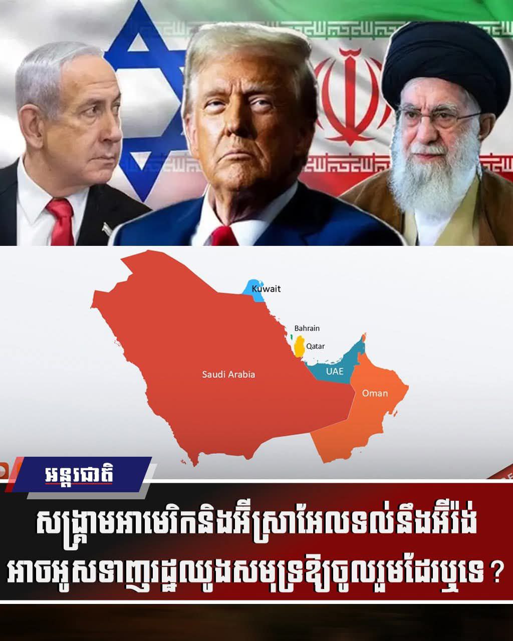 អន្តរជាតិ : រដ្ឋឈូងសមុទ្របានរកឃើញថា ខ្លួនឯងស្ថិតនៅលើសមរភូមិជួរមុខ នៃសង្រ្គាមថ្មីបំផុតរបស់តំបន់មជ្ឈិបូព៌ា រវាងប្រទេស២ទល់នឹង១ គឺអាមេរិកនិងអ៊ីស្រាអែល ទល់នឹងអ៊ីរ៉ង់។ អ៊ីរ៉ង់បានសងសឹងអាមេរិកនិងអ៊ីស្រាអែល ដោយការបាញ់មីស៊ីលនិងយន្តហោះdronesគ្មានមនុស្សបើករាប់រយគ្រាប់និងគ្រឿង ដាក់បណ្តាប្រទេសអារ៉ាប់ដែលនៅក្បែរខាង។ ការវាយប្រហារនេះ អ៊ីរ៉ង់បានផ្តោតគោលដៅលើមូលដ្ឋានយោធាអាមេរិក នៅលើទឹកដីនៃប្រទេសទាំងនោះ ប៉ុន្តែក៏បានវាយលើទីតាំងស៊ីវិលនិងហេដ្ឋារចនាសម្ព័ន្ធថាមពលផងដែរ ដែលធ្វើឱ្យពួកគេខឹងសម្បាយ៉ាងខ្លាំង។ នេះបើតាមការចុះផ្សាយដោយសារព័ត៌មានBBC។