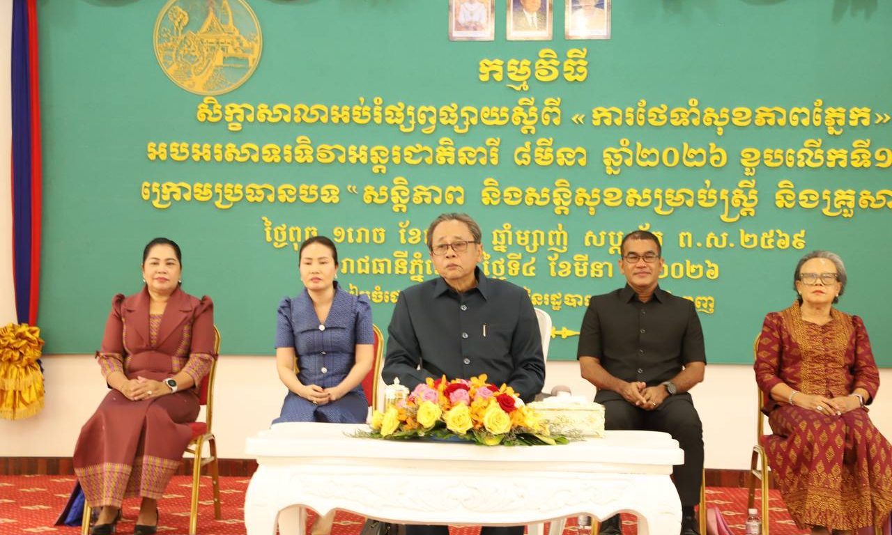លោក ពេញ ធារម្យ អភិបាលរងរាជធានីបានលើកឡើងថា៖ សិក្ខាសាលាអប់រំផ្សព្វផ្សាយស្តីពី «ការថែទាំសុខភាពភ្នែក»អបអរសាទរទិវាអន្តរជាតិនារី ៨មីនា ឆ្នាំ២០២៦ ខួបលើកទី១១៥ ក្រោមប្រធានបទ “សន្តិភាព និងសន្តិសុខសម្រាប់ស្ត្រី និងគ្រួសារ” ជាប្រធានបទ បង្ហាញថា ការចូលរួមរបស់ស្ត្រី គឺមិនអាចខ្វះបានក្នុងការអភិវឌ្ឍសង្គមជាតិលើគ្រប់វិស័យ។ មានសន្តិភាព គឺមានអ្វីគ្រប់យ៉ាង។ ក្រោមម្លប់សន្តិភាព ឋានៈរបស់ស្ត្រីត្រូវបានលើកកំពស់។