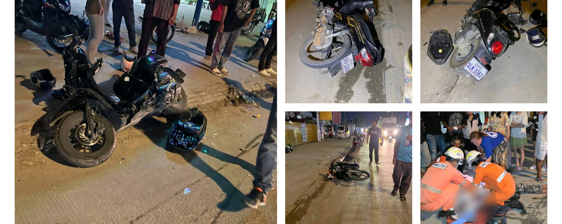 ភ្នំពេញ÷ យុវជនម្នាក់បានរងរបួសធ្ងន់បាក់ដៃម្ខាងខណៈកំពុងបើកបរម៉ូតូលើដងផ្លូវហើយក៏ជួបគ្រោះថ្នាក់ចរាចរណ៍ជាមួយម៉ូតូមួយគ្រឿងទៀតបណ្ដាលឲ្យភាគីម្ខាងទៀតនោះរងរបួសស្រាល ចំណែកម៉ូតូទាំង២គ្រឿងរងការខូចខាតយ៉ាងដំណំ។
