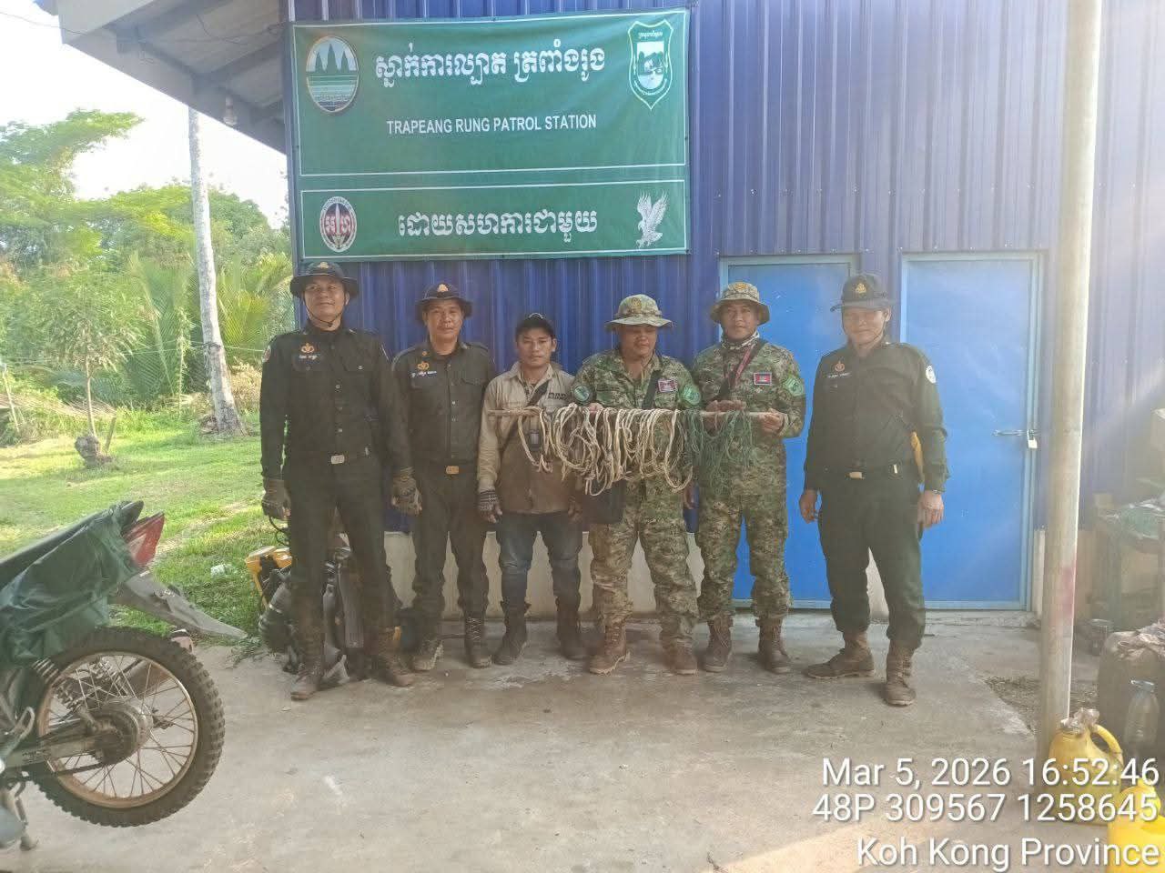 របាយការណ៍ពីមន្ទីរបរិស្ថានខេត្ត បានឱ្យដឹងថា នៅថ្ងៃទី៥ ខែមីនា ឆ្នាំ២០២៦ មន្ត្រីឧទ្យានុរក្ស និងមន្ត្រីកងរាជអាវុធហត្ថខេត្តកោះកុង បានដើរដោះអន្ទាក់បានចំនួនសរុប១៨៣ខ្សែ។