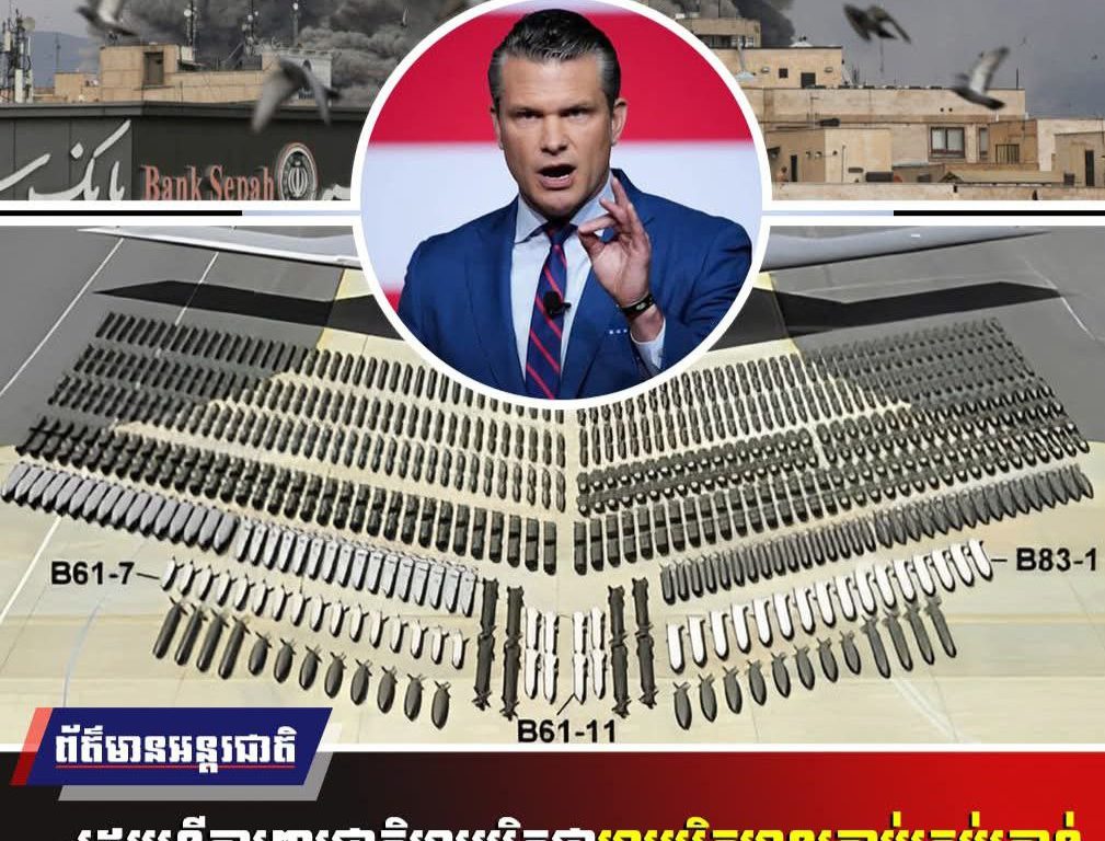 អន្តរជាតិ : រដ្ឋមន្រ្តីការពារជាតិអាមេរិកលោកPete Hegseth និងលោកBrad Cooperមេបញ្ជាការនៃបញ្ជាការដ្ឋាន ដែលដឹកនាំកងកម្លាំងអាមេរិកនៅក្នុងតំបន់មជ្ឈិបូព៌ាបាននិយាយថា អាមេរិកមានគ្រាប់គ្រប់គ្រាន់ដើម្បីបន្តទម្លាក់ដោយគ្មានដែនកំណត់។ លោក Hegsethបានប្រាប់អ្នកកាសែតនៅទីស្នាក់ការកណ្តាលនៃបញ្ជាការដ្ឋានកណ្តាលនៅរដ្ឋFloridaថា « អ៊ីរ៉ង់កំពុងសង្ឃឹមថាយើងមិនអាចទ្រទ្រង់រឿងនេះបានទេ ដែលនេះគឺជាការគណនាខុសដ៏អាក្រក់មួយ»។ លោកថា« គ្រាប់របស់យើងពេញឃ្លាំងហើយឆន្ទៈរបស់យើងគឺរឹងមាំ»។