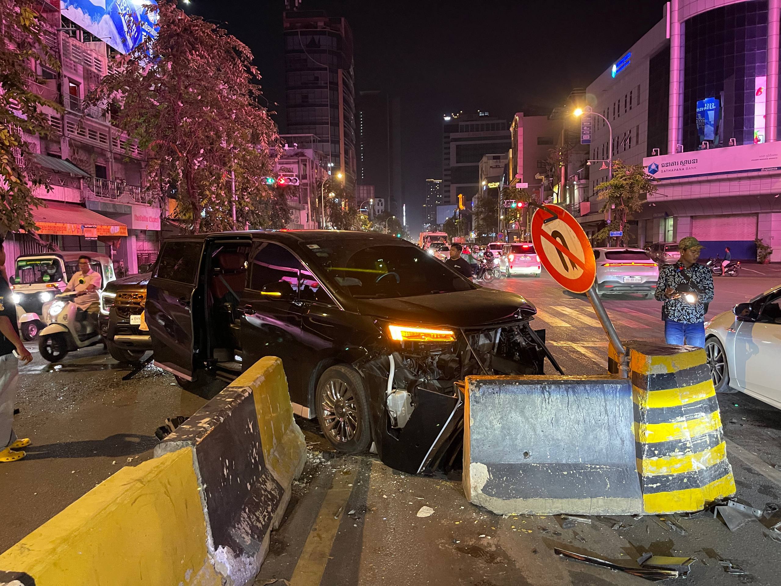 តាមប្រភពពីកន្លែងកើតហេតុបានឲ្យដឹងថា នៅមុនពេលកើតហេតុគេឃើញរថយន្តម៉ាក GAC ពណ៌ខ្មៅមួយគ្រឿងពាក់ ផ្លាកលេខ កម្ពុជា 3456.NCC បើកបរដោយបុរសម្នាក់ធ្វើដំណើរតាមបណ្ដោយផ្លូវព្រះមុនីវង្សក្នុងទិសដៅពីត្បូងទៅជើងដោយល្បឿនលឿន លុះពេលបើកមកដល់ចំណុចកើតហេតុខាងលើដោយខ្វះការប្រុងប្រយ័ត្នក៏រេចង្កូតជ្រុលទៅបុករបាំងថ្មពុះចែកទ្រូងផ្លូវយ៉ាងពេញទំហឹងបណ្តាលឲ្យបាក់ចំនួនមួយកង់ ហើយស្របពេលគ្នានោះមានរថយន្តម៉ាក Ford Ranger ពណ៌ខ្មៅពាក់ផ្លាកលេខ ភ្នំពេញ 2AP-6544 បើកបរដោយបុរសម្នាក់ធ្វើដំណើរមកពីក្រោយស្របទិសគ្នាយ៉ាងលឿនជាន់ ហ្រ្វ័ងមិនទាន់ក៏ជ្រុលទៅបុករថយន្ដ GAC ពីក្រោយបន្ថែមទៀតបណ្តាលឲ្យរងការខូចខាតធ្ងន់ធ្ងរទាំងសងខាង តែសំណាងល្អមិនបង្កឲ្យមានគ្រោះថ្នាក់ដល់មនុស្ស ហើយភ្លាមៗនោះដែរម្ចាស់រថយន្តទាំងសងខាងក៏បានបើកទ្វារចុះគេចចេញពីកន្លែងកើតហេតុបាត់តែម្ដង។