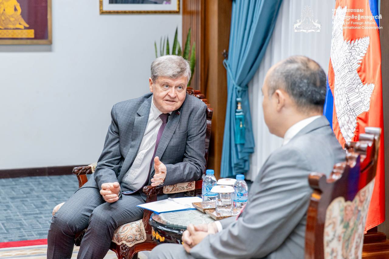 ភ្នំពេញ៖ លោក គង់ ភោគ រដ្ឋលេខាធិការ និងជាឧត្ដមមន្ត្រីអាស៊ានរបស់កម្ពុជា នៅព្រឹកថ្ងៃទី១០ ខែមីនា ឆ្នាំ២០២៦នេះ បានទទួលជួបពិភាក្សាការងារទ្វេភាគីជាមួយលោក អាណាតូលី បូរ៉ូវីក ឯកអគ្គរដ្ឋទូតនៃសហព័ន្ធរុស្ស៊ី ប្រចាំព្រះរាជាណាចក្រកម្ពុជា នៅទីស្ដីការក្រសួង។