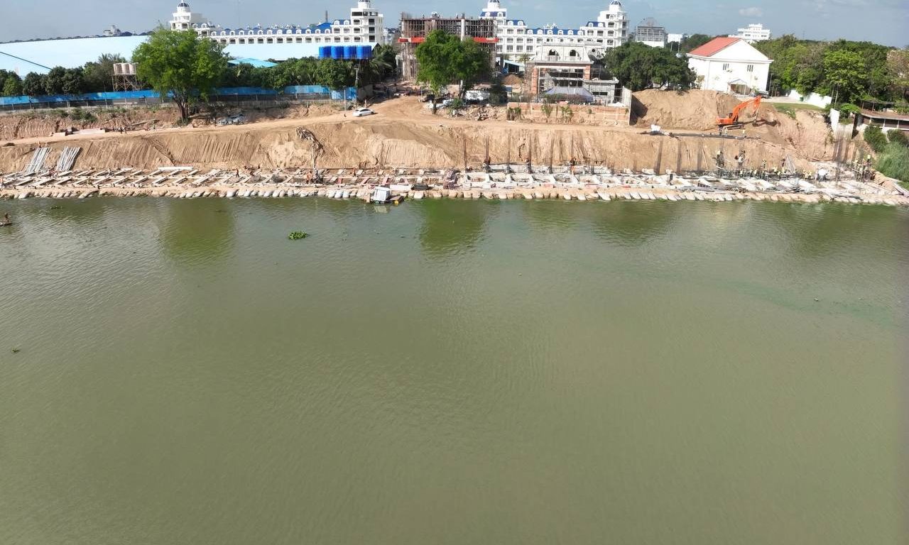 លោក ឈា ប៊ុនរិទ្ធ បញ្ជាក់ថា សំណង់ការពារច្រាំងទន្លេ ស្ថិតក្នុងភូមិព្រែកតាគង់ ខណ្ឌជ្រោយចង្វានេះ ជាការវិនិយោគដោយវិស័យឯកជនក្នុងគោលបំណងការពារការបាក់ច្រាំង ដែលមានប្រវែងសរុប២២០ម៉ែត្រ។ បច្ចុប្បន្ន សំណង់សម្រេចការសាងសង់បានប្រមាណ៨ភាគរយប៉ុណ្ណោះ ដោយទទួលបានការឯកភាពជាគោលការណ៍ពីរដ្ឋបាលរាជធានីភ្នំពេញ កាលពីថ្ងៃទី៣ធ្នូ ឆ្នាំ២០២៥កន្លងទៅ ប៉ុន្តែពុំទាន់មានការអនុញ្ញាតផ្នែកបច្ចេកទេសពីក្រសួងនៅឡើយទេ។
