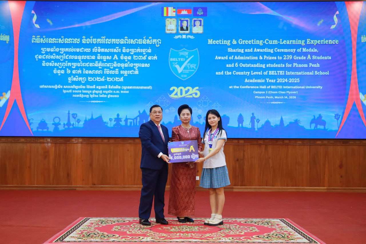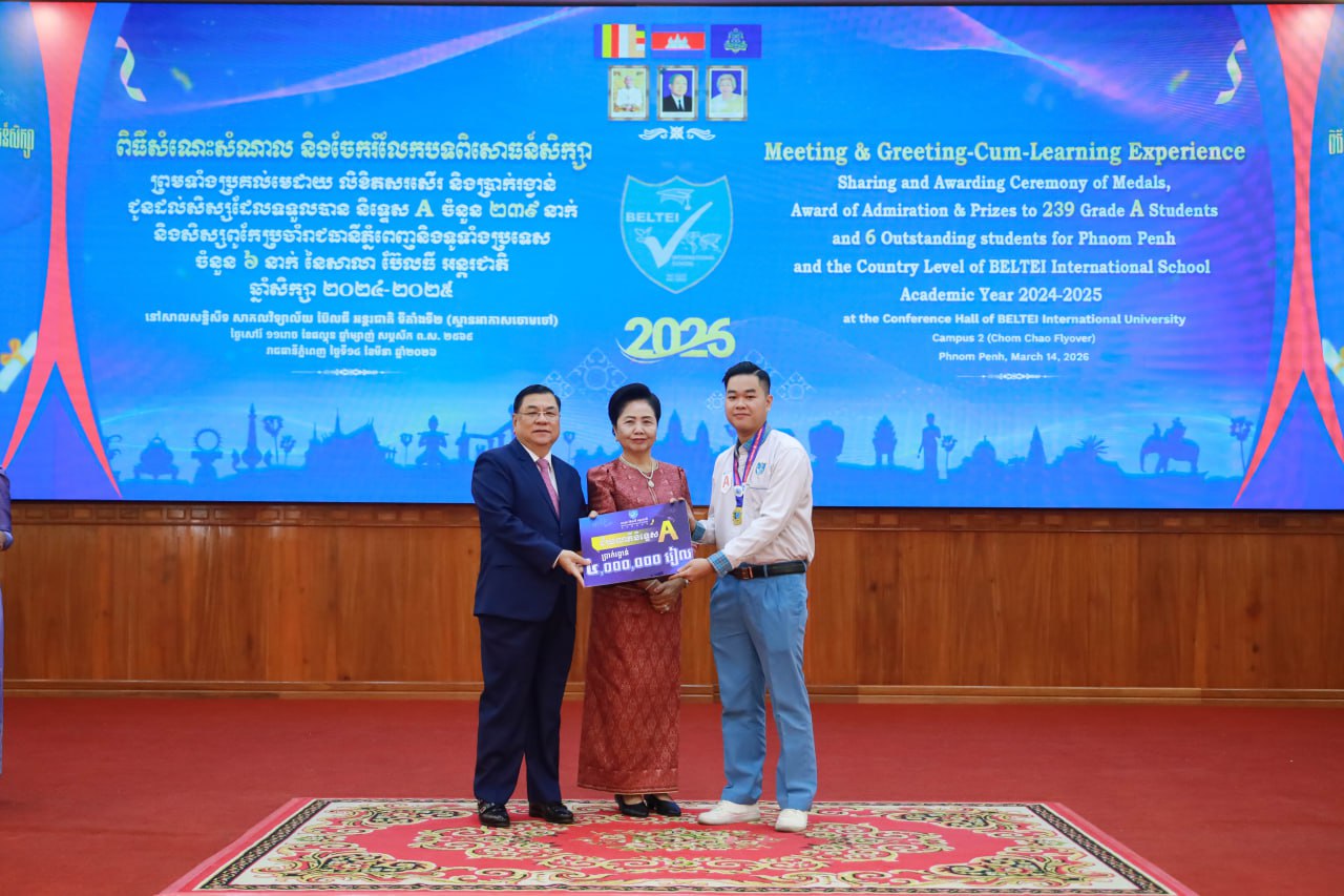 នៅថ្ងៃទី១៤ ខែមីនា ឆ្នាំ២០២៦ សាលា ប៊ែលធី អន្តរជាតិ បានរៀបចំពិធីសំណេះសំណាល និងចែករំលែកបទពិសោធន៍ សិក្សារបស់សិស្សប៊ែលធីនិទ្ទេសA ចំនួន២៣៩រូប ជូនសិស្សថ្នា ក់ទី១២ ដែលត្រៀមប្រឡងសញ្ញាបត្រមធ្យមសិក្សាទុតិយភូមិ ដោយមានការចូលរួមផ្ទាល់និងផ្សាយបន្ត (Live) ទៅសិស្សគ្រប់សាខាចំនួន ២,៧៥៩នាក់ក្រោមអធិបតីភាពដ៏ខ្ពង់ខ្ពស់ ឯកឧត្តមបណ្ឌិត លី ឆេង តំណាងរាស្ត្រមណ្ឌលរាជធានីភ្នំពេញ ស្ថាបនិក និងជាអគ្គនាយក ប៊ែលធី គ្រុប និង លោកជំទាវ។