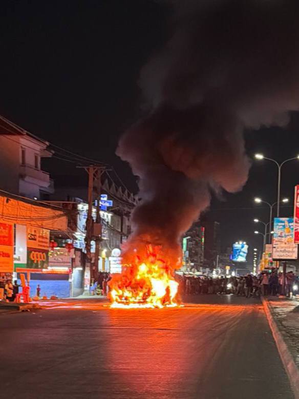 ភ្នំពេញ៖ បុរសម្នាក់បានបើករថយន្តម៉ាកឡង់គ្រ័រមួយគ្រឿងតាមបណ្តោយផ្លូវសុខៗស្រាប់តែហុយផ្សែងចេញពីខាងក្រោមបង្កទៅជាអគ្គិភ័យឆាបឆេះរាលដាលយ៉ាងសន្ធោសន្ធៅ ផ្អើលដល់សមត្ថកិច្ចបញ្ចេញរថយន្តទៅជួយអន្តរាគមន៍បាញ់ពន្លត់ភ្លាមៗ។