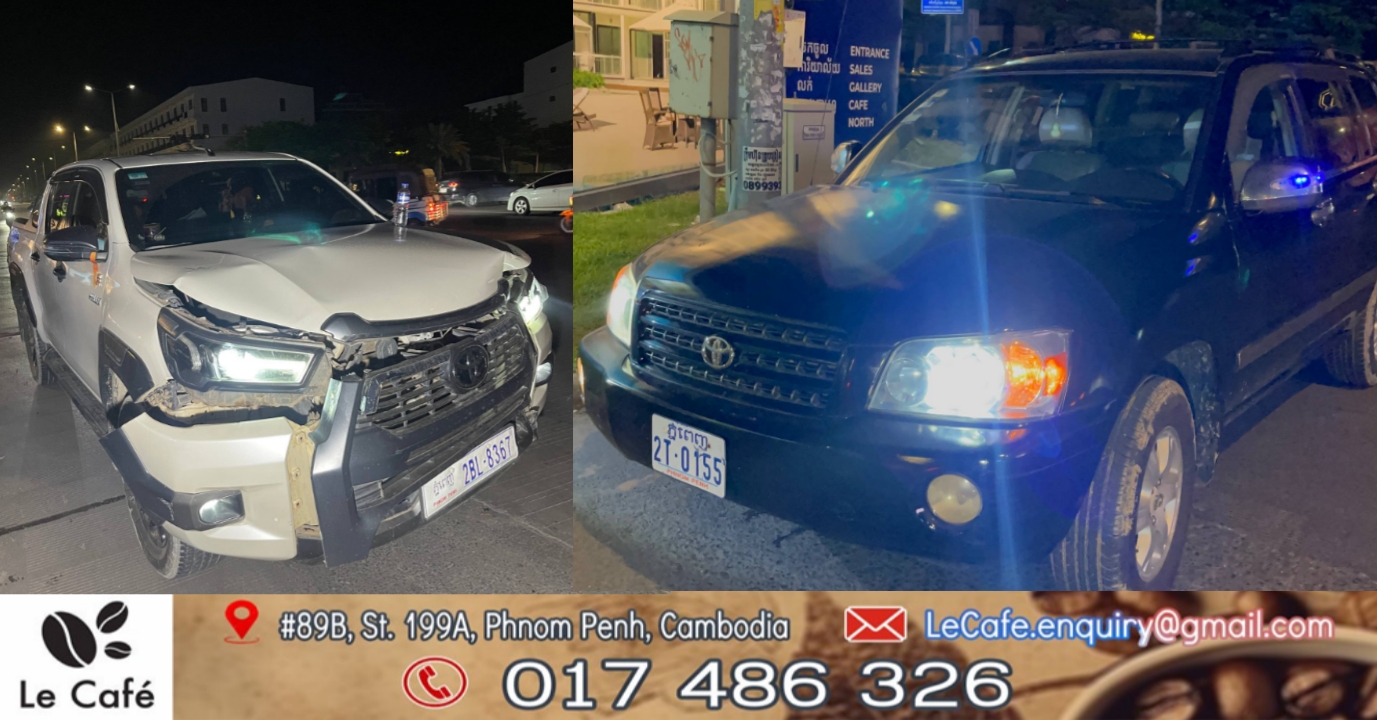 តាមប្រភពពីកន្លែងកើតហេតុបានឲ្យដឹងថា នៅមុនពេលកើតហេតុគេឃើញរថយន្តម៉ាកហាយឡែនឌ័រពណ៌ខ្មោមួយគ្រឿងពាក់ផ្លាកលេខ ភ្នំពេញ 2T-0155 បើកបរដោយបុរសម្នាក់ធ្វើដំណើរតាមបណ្តោយផ្លូវ២០០៤ទិសដៅពីលិចទៅកើតឆ្លងស្តុបផ្លូវបំបែកជាបួន ខណះពេលបើកឆ្លងដល់ពាក់កណ្តាលផ្លូវ ស្រាប់តែគេឃើញមានរថយន្តមួយគ្រឿងទៀតម៉ាក TOYOTA RAL LY ពណ៌សពាក់ផ្លាកលេខ ភ្នំពេញ 2BL-8367 បើកបរដោយបុរសម្នាក់ ធ្វើដំណើរតាមបណ្តោយផ្លូវណតប្រ៊ីតទិសដៅពីត្បូងទៅជើង ឆ្លងស្តុបផ្លូវបំបែកជាបួនដូចគ្នាក្នុងល្បឿនលឿនមិនប្រយ័ត្នក៏ជ្រុលទៅបុករថយន្តហាយឡែនឌ័រ ចំពាក់កណ្តាលចំហៀងខាងស្តាំយ៉ាងពេញទំហឹងបណ្តាលឲ្យរងការខូចខាតសម្ភារះទាំងសងខាងយ៉ាងដំណំ សំណាងល្អមិនបង្កឲ្យមានគ្រោះថ្នាក់ទៅដល់មនុស្ស។