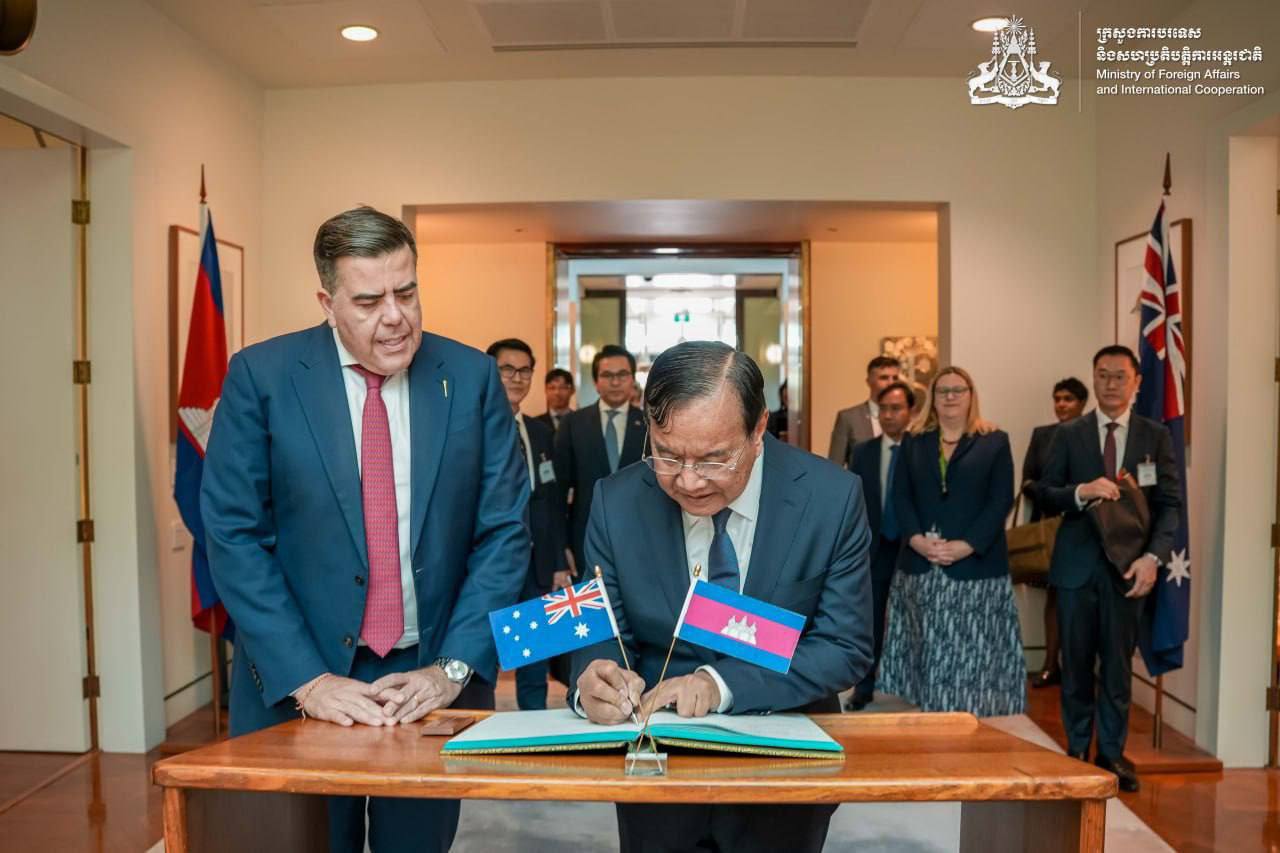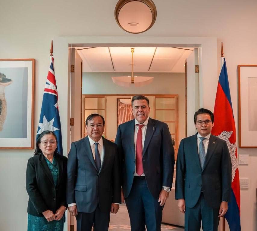 អូស្ត្រាលី៖ លោកឧបនាយករដ្ឋមន្ត្រី ប្រាក់ សុខុន រដ្ឋមន្ត្រីការបរទេស និងសហប្រតិបត្តិការអន្តរជាតិ នៃព្រះរាជាណាចក្រកម្ពុជា នៅព្រឹកថ្ងៃទី១៦ ខែមីនា ឆ្នាំ២០២៦ បានអញ្ជើញចូលជួបសម្តែងការគួរសមចំពោះ លោក Milton Dick ប្រធានរដ្ឋសភាអូស្ត្រាលី។