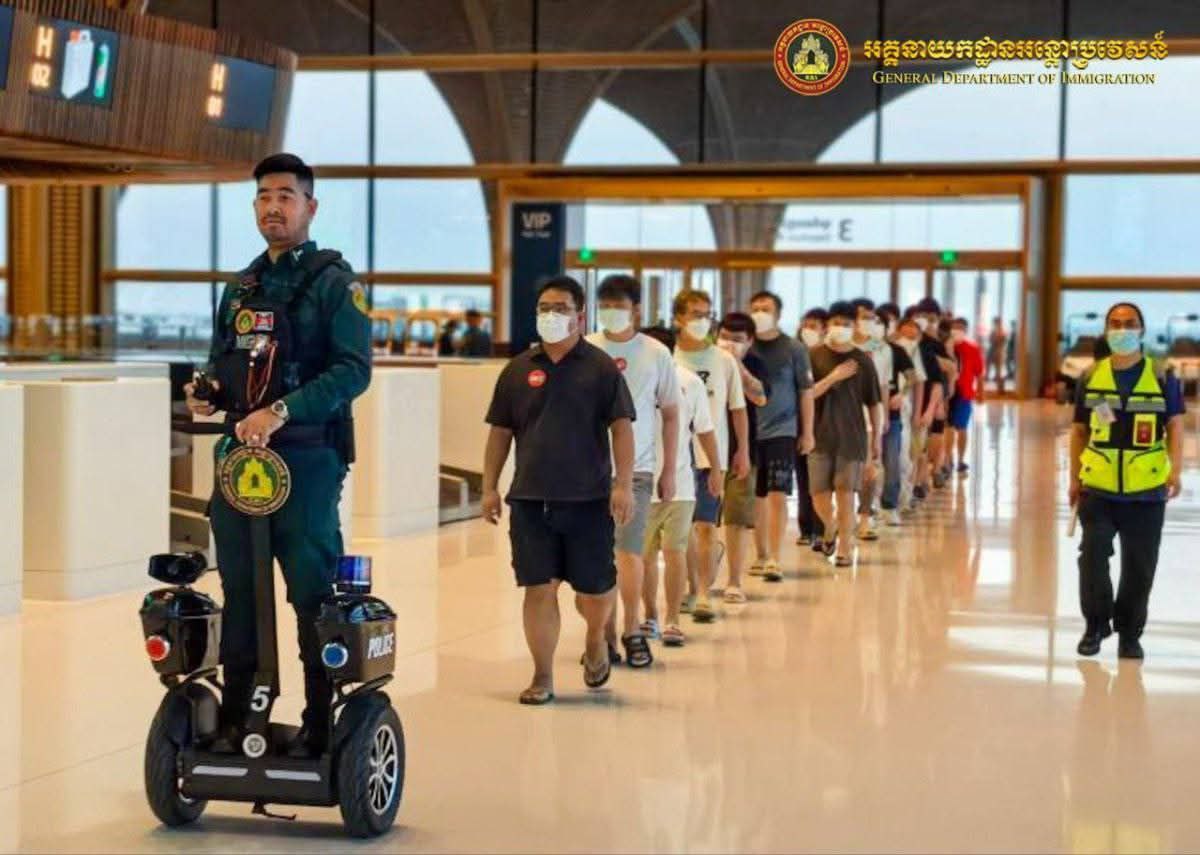 ភ្នំពេញ÷ នៅយប់ថ្ងៃទី១៥ ឈានចូលថ្ងៃទី១៦ ខែមីនា ឆ្នាំ២០២៦ អនុវត្តតាមអនុសាសន៍របស់លោកអភិសន្តិបណ្ឌិត ឧបនាយករដ្ឋមន្ត្រី រដ្ឋមន្ត្រីក្រសួងមហាផ្ទៃ, ឧត្តមសេនីយ៍ឯក សុខ វាសនា អគ្គនាយកអន្តោ ប្រវេសន៍ បានណែនាំឱ្យនាយកដ្ឋានស៊ើបអង្កេត និងអនុវត្តនីតិវិធី សហាការជាមួយស្ថានទូតចិនប្រចាំនៅព្រះរាជាណាចក្រកម្ពុជា បន្តធ្វើការបណ្តេញជនជាតិចិនសរុបចំនួន ៥០០នាក់ (ស្រី១៣នាក់) ពាក់ព័ន្ធករណីឆបោកតាមប្រព័ន្ធអនឡាញ (Online Scams) និងករណីលួចស្នាក់នៅ ធ្វើការងារខុសច្បាប់ ត្រូវបានបណ្ដេញចេញតាមរយៈយន្តហោះពិសេស នៅប៉ុស្តិ៍នគរបាលច្រកទ្វារអាកាសអន្តរជាតិតេជោ និងប៉ុស្តិ៍នគរបាលច្រកទ្វារអាកាសកងកេង (ខេត្តព្រះសីហនុ)។ នេះបើតាម អគ្គនាយកដ្ឋានអន្តោប្រវេសន៍។
